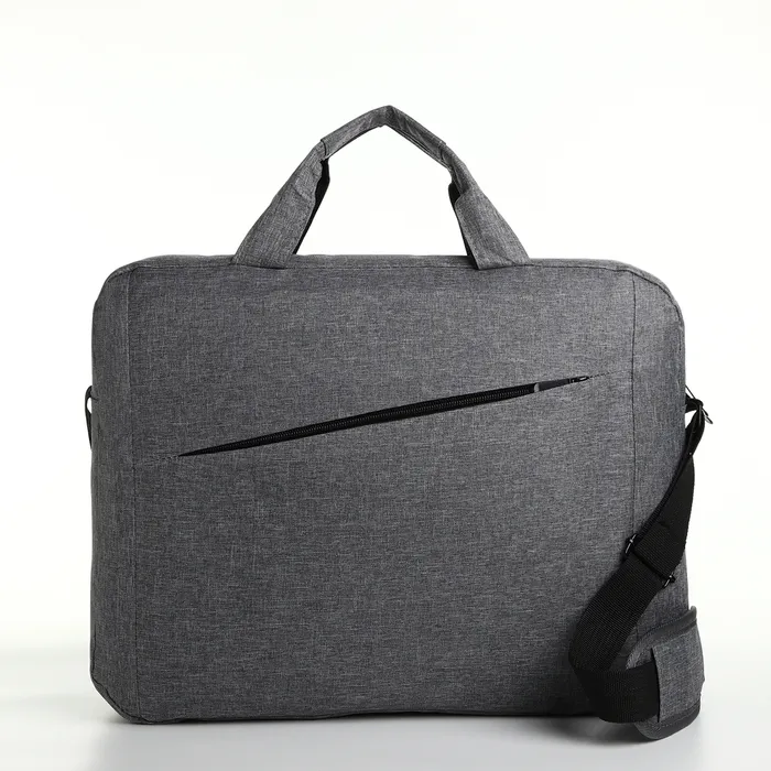 Сумка для ноутбука на молнии, наружный карман, держатель для чемодана, длинный ремень, серая — Характеристики