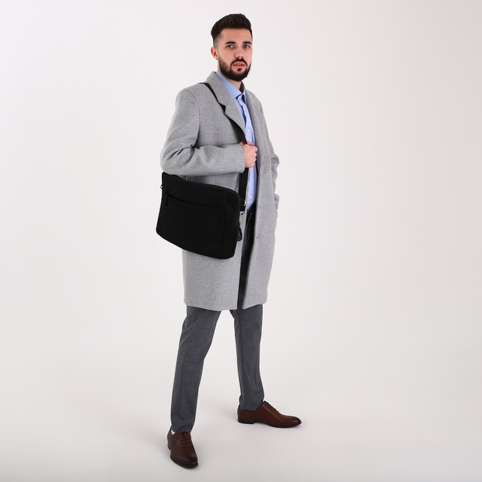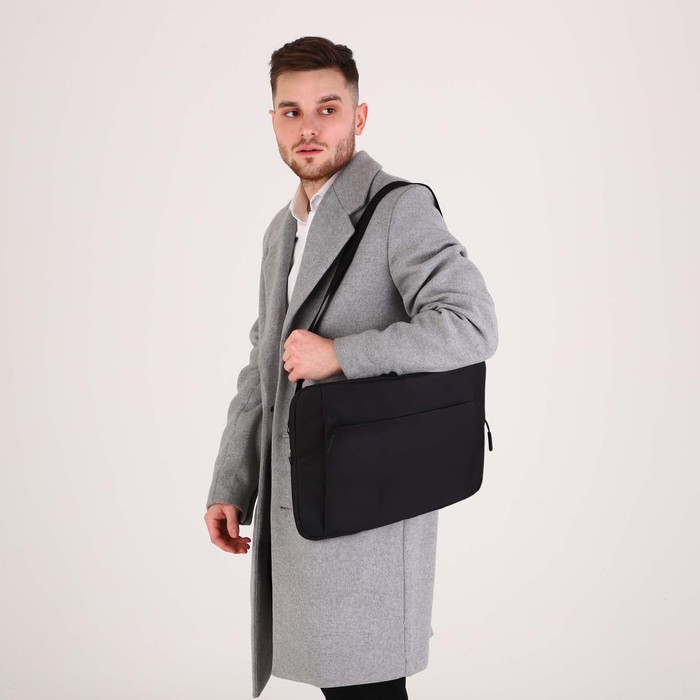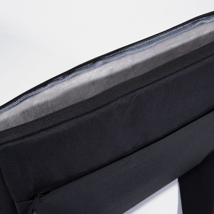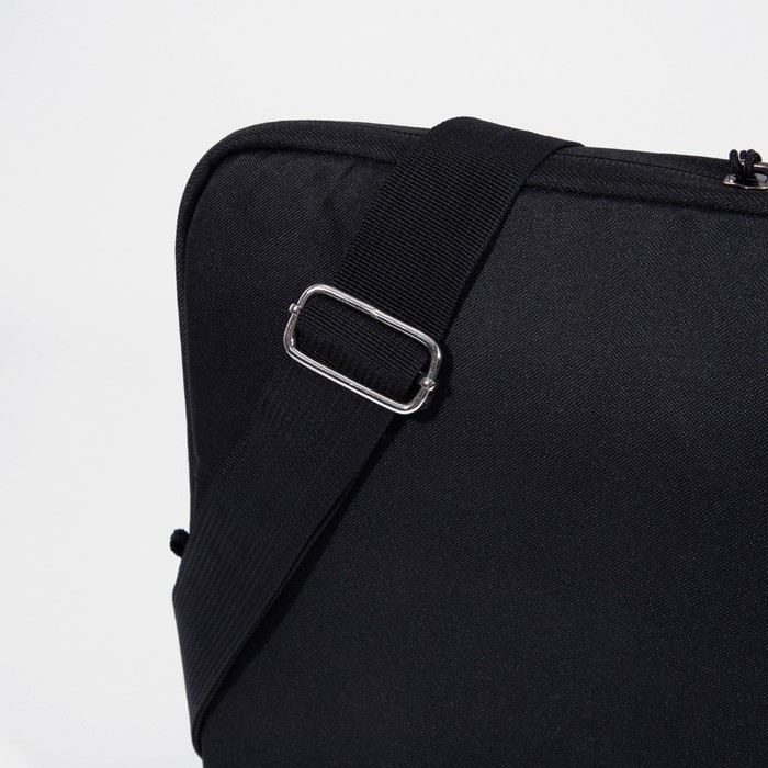Сумка для ноутбука на молнии, наружный карман, длинный ремень, чёрная — Характеристики