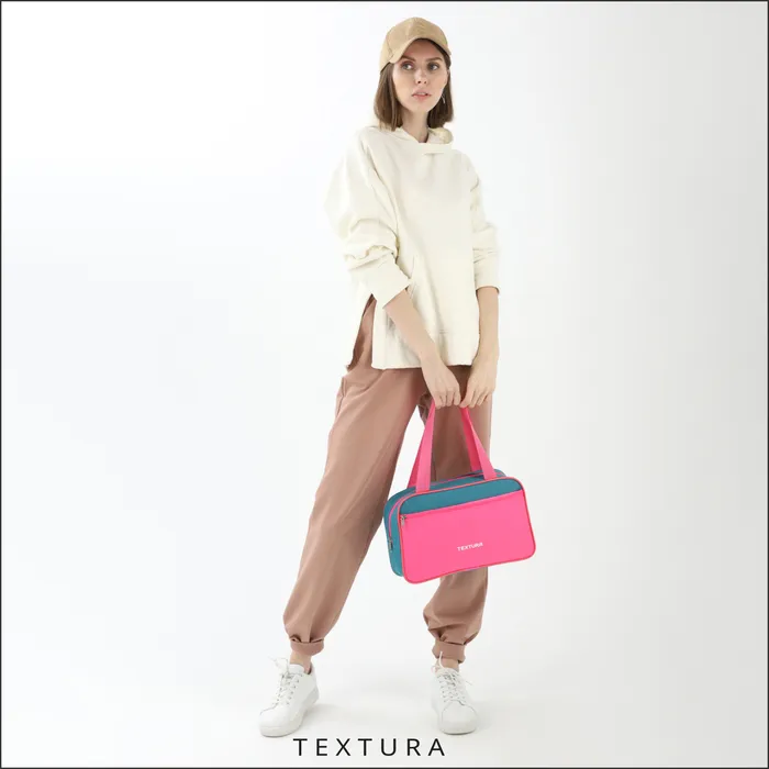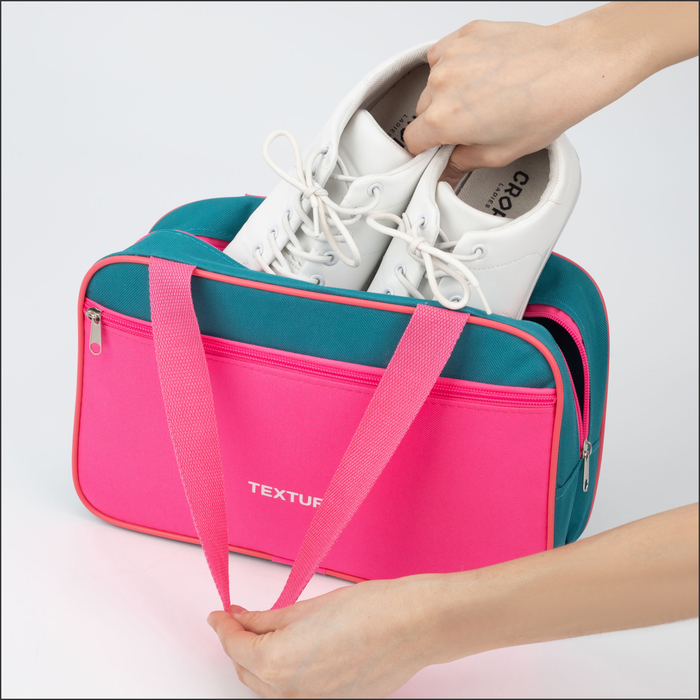 Сумка для обуви на молнии TEXTURA, наружный карман, цвет бирюзовый/розовый — Характеристики