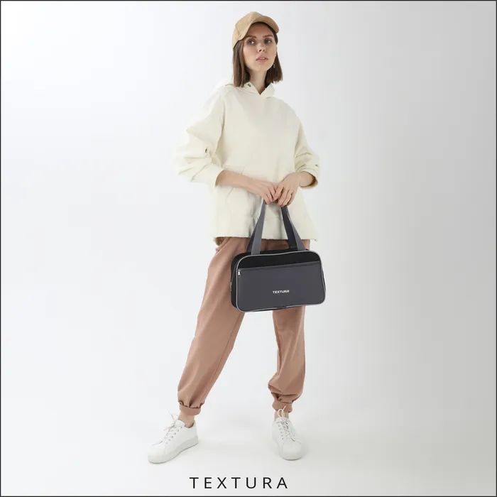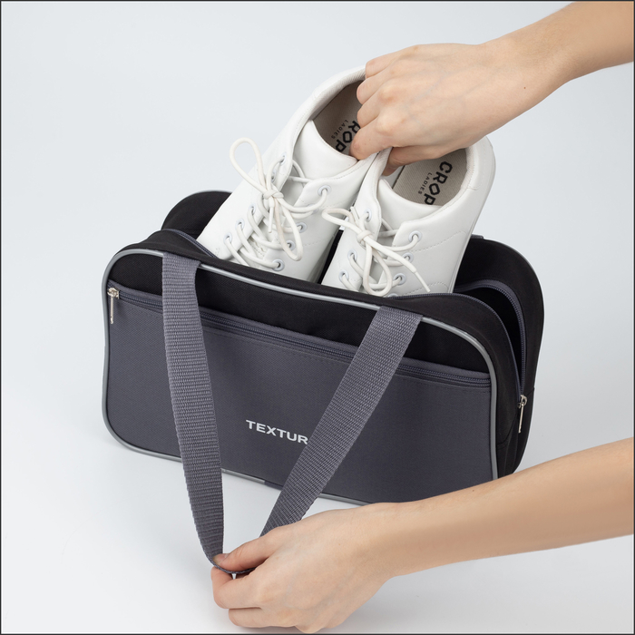 Сумка для обуви на молнии TEXTURA, наружный карман, цвет чёрный/серый — Характеристики
