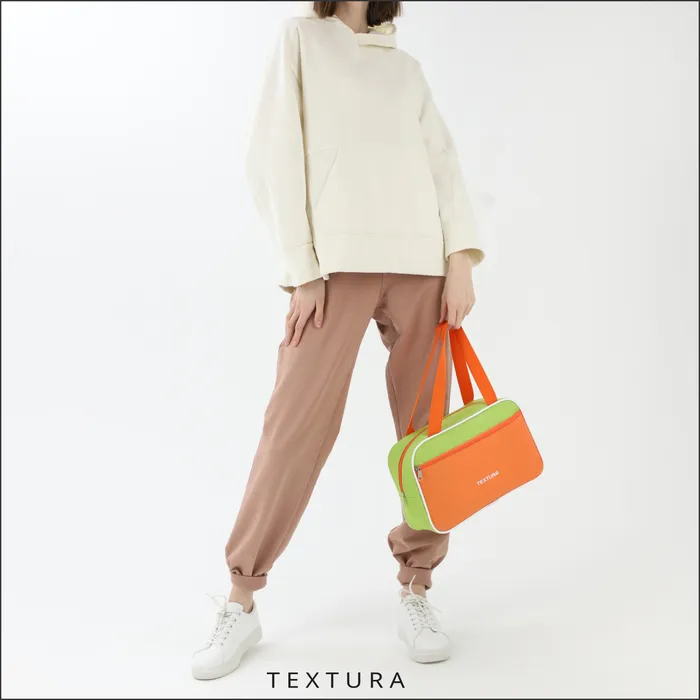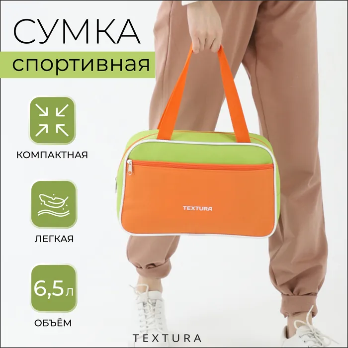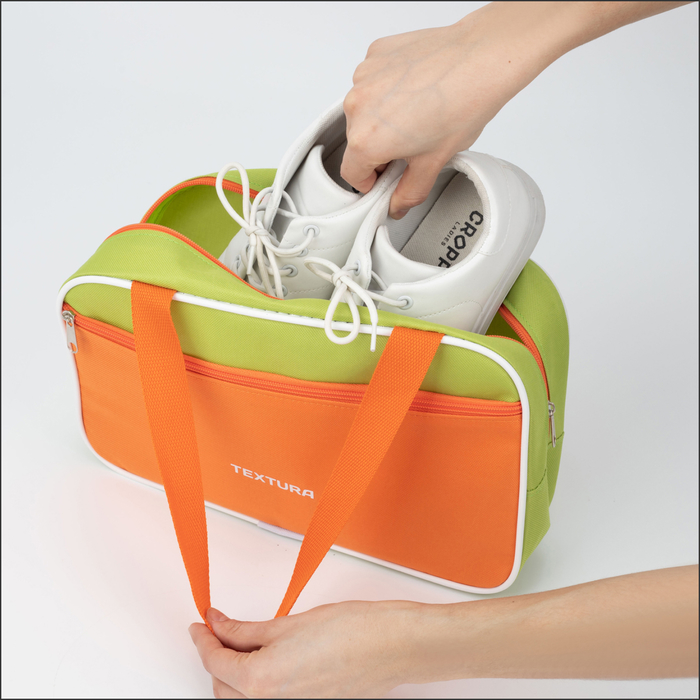 Сумка для обуви на молнии TEXTURA, наружный карман, цвет салатовый/оранжевый — Характеристики