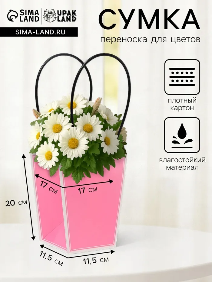 Элегантная водостойкая сумка для цветов — идеальное решение для стильной и удобной упаковки букетов и композиций. Изготовлена из плотного влагостойкого картона, надежно защищает цветы от влаги и деформации. Удобные длинные ручки позволяют легко переносить композицию.