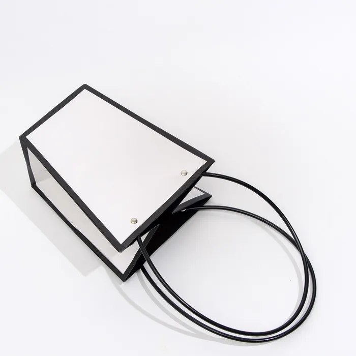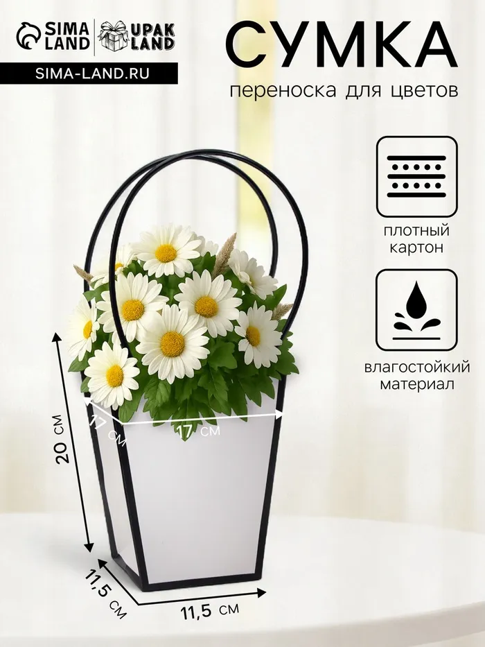 Элегантная водостойкая сумка для цветов — идеальное решение для стильной и удобной упаковки букетов и композиций. Изготовлена из плотного влагостойкого картона, надежно защищает цветы от влаги и деформации. Удобные длинные ручки позволяют легко переносить композицию.