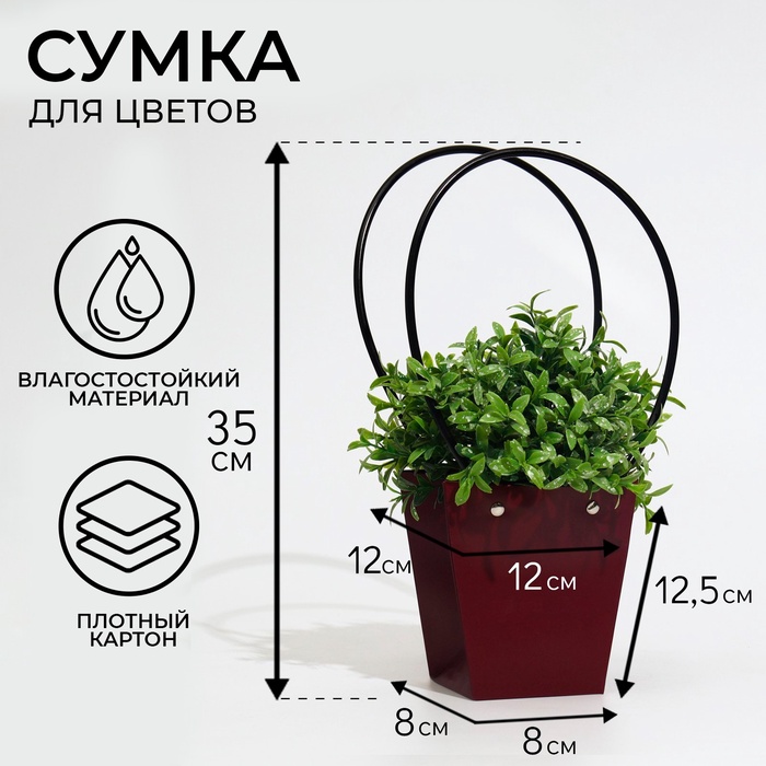 Сумка для цветов бордовая влагостойкая, 12×12 - 8×8 - 12.5 см — Характеристики