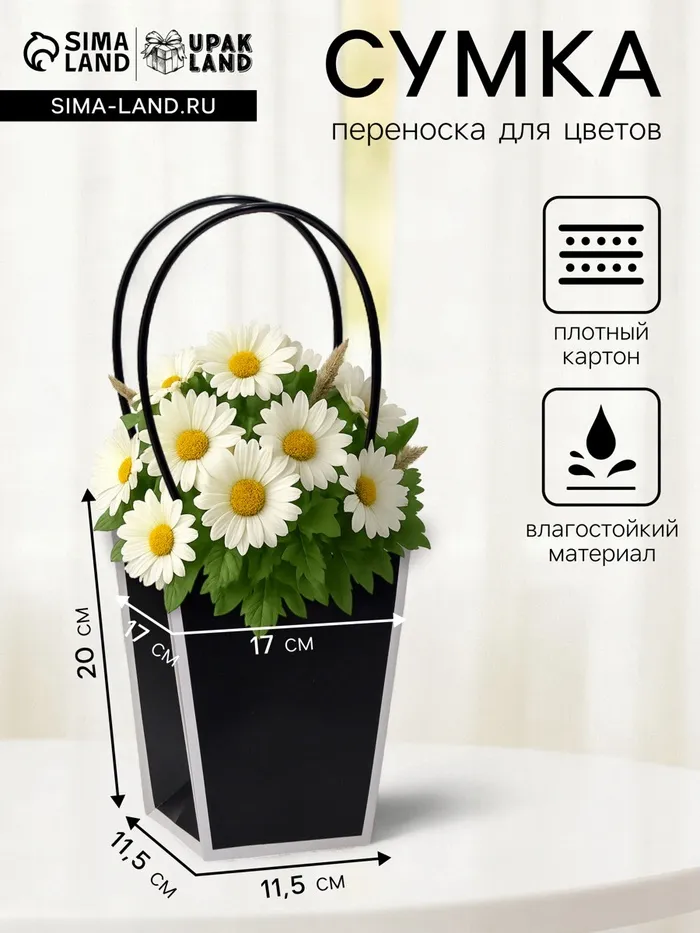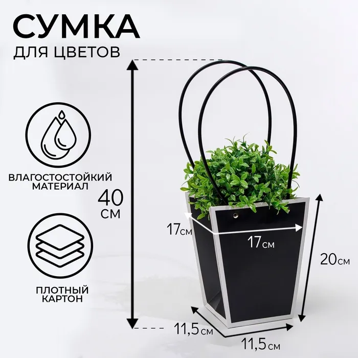 Сумка для цветов чёрная влагостойкая, 17×17 - 11.5×11.5 - 20 см — Характеристики