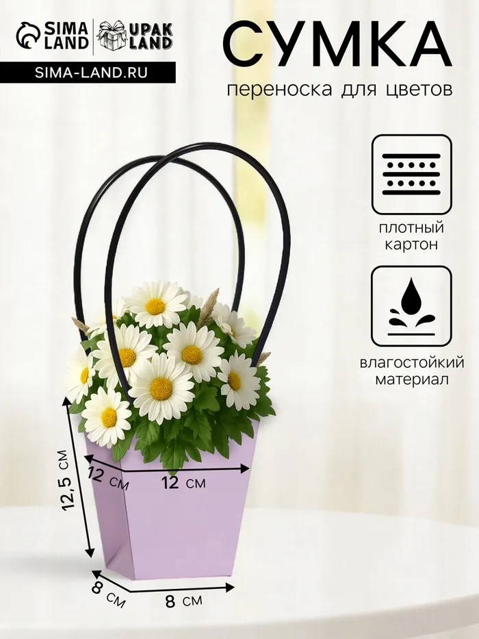 Элегантная водостойкая сумка для цветов — идеальное решение для стильной и удобной упаковки букетов и композиций. Изготовлена из плотного влагостойкого картона, надежно защищает цветы от влаги и деформации. Удобные длинные ручки позволяют легко переносить композицию.