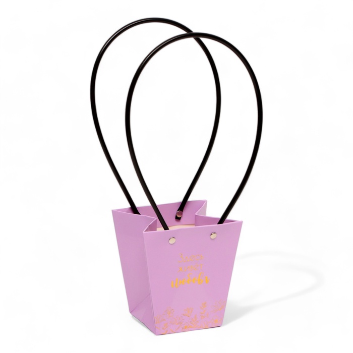 Сумка для цветов Лиловая «Здесь живет Любовь» влагостойкая 12×12 - 8×8 - 12.5 см — Характеристики