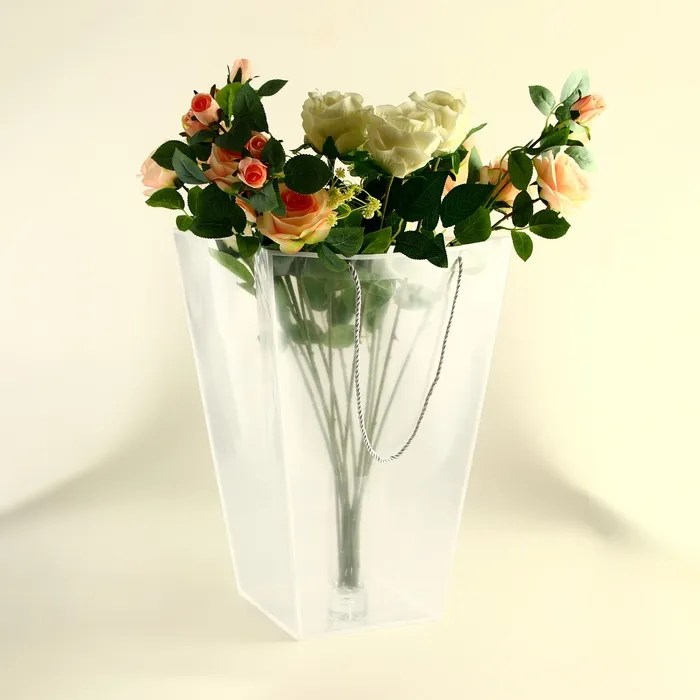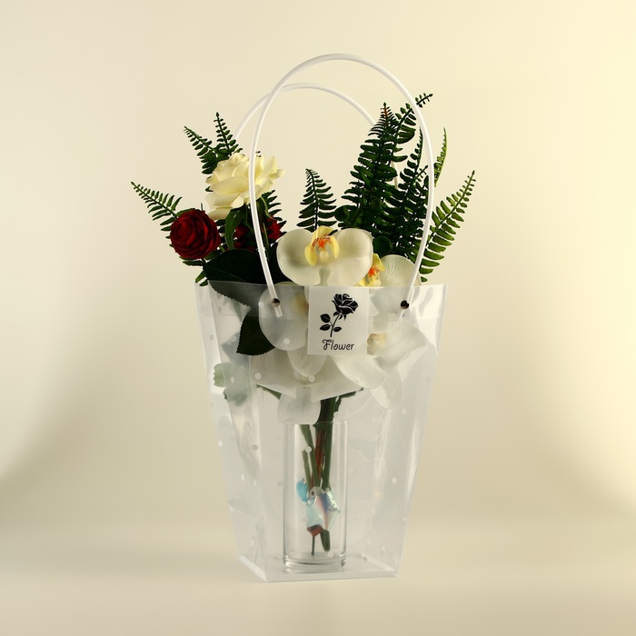 Эта элегантная сумка для цветов станет идеальным дополнением к любому букету, делая его ещё более выразительным и эффектным. Выполненная из прозрачного, влагостойкого материала, она не только защищает цветы от внешних воздействий, но и сохраняет их свежесть на протяжении длительного времени. Контрастная кайма по краям добавляет стильный акцент и подчёркивает оригинальность упаковки.