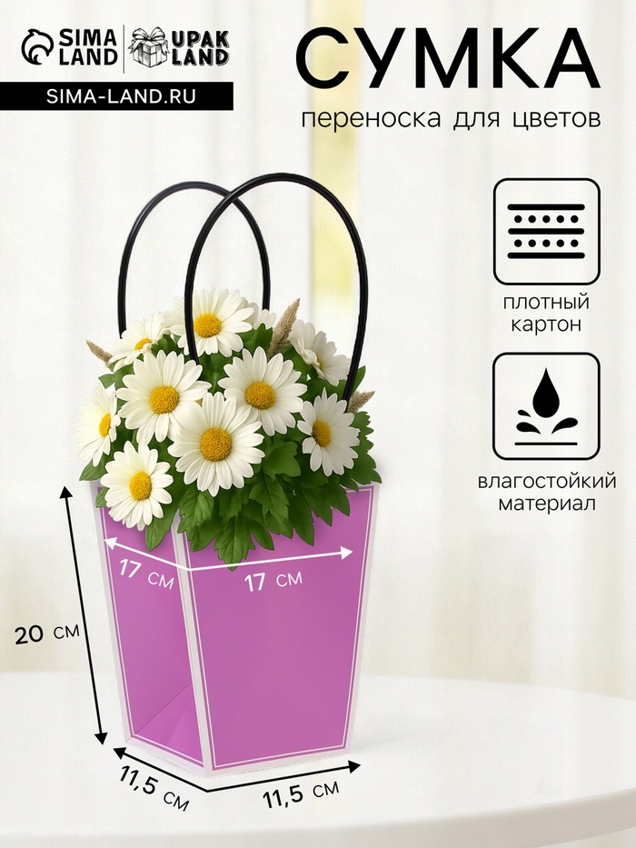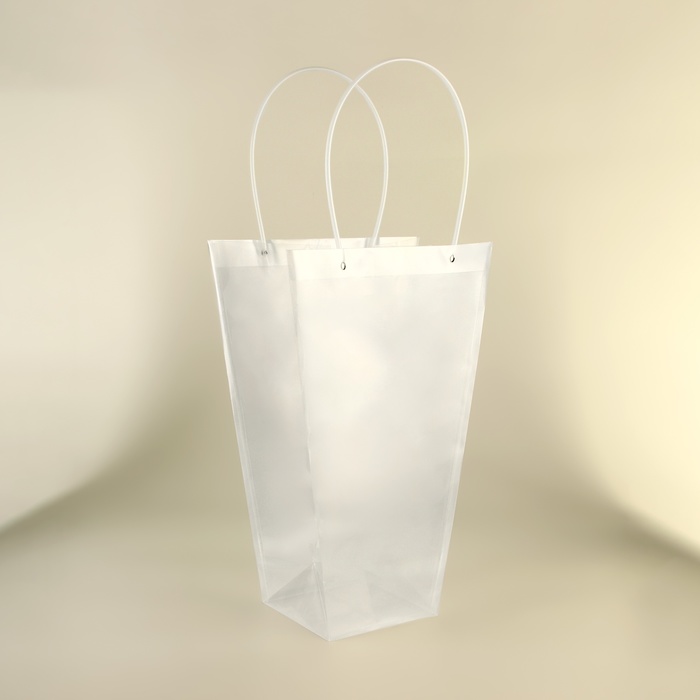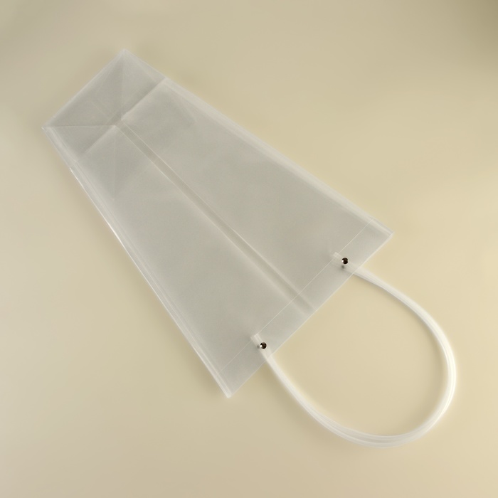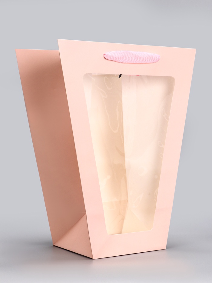 Благодаря внушительным размерам 42.5х29х15 см, сумка вмещает даже самые пышные букеты, создавая для них изящное обрамление. Удобные ручки обеспечивают комфортное перенесение, а устойчивое дно гарантирует надёжную фиксацию цветочной композиции. Прозрачный материал подчёркивает естественную красоту цветов и позволяет им оставаться в центре внимания.