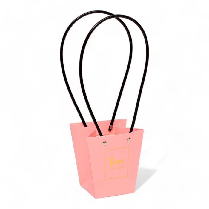 Сумка для цветов розовая Love Lives Here 12×12 - 8×8 - 12.5 см