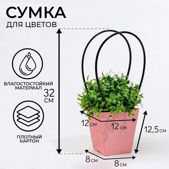 Элегантная водостойкая сумка для цветов — идеальное решение для стильной и удобной упаковки букетов и композиций. Изготовлена из плотного влагостойкого картона, надежно защищает цветы от влаги и деформации. Удобные длинные ручки позволяют легко переносить композицию.