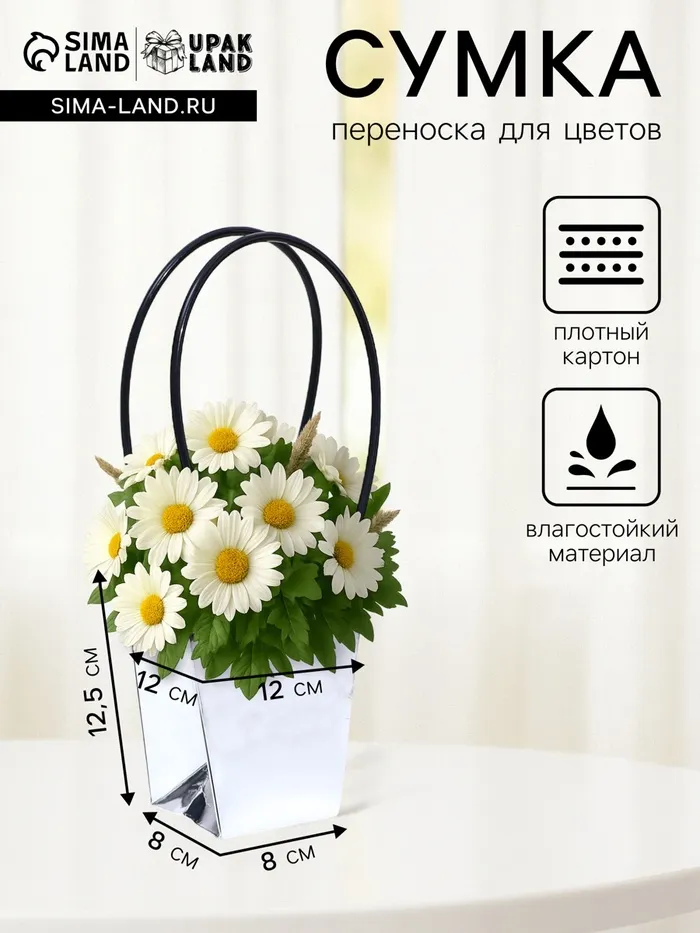 Сумка для цветов «Серебро», влагостойкая, 12×12 - 8×8 - 12.5 см — Характеристики