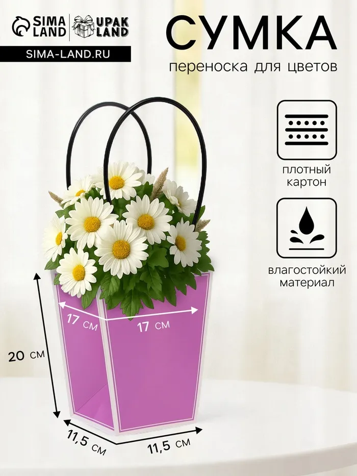 Сумка для цветов сиреневая влагостойкая, 17×17 - 11.5×11.5 - 20 см 9 — Характеристики