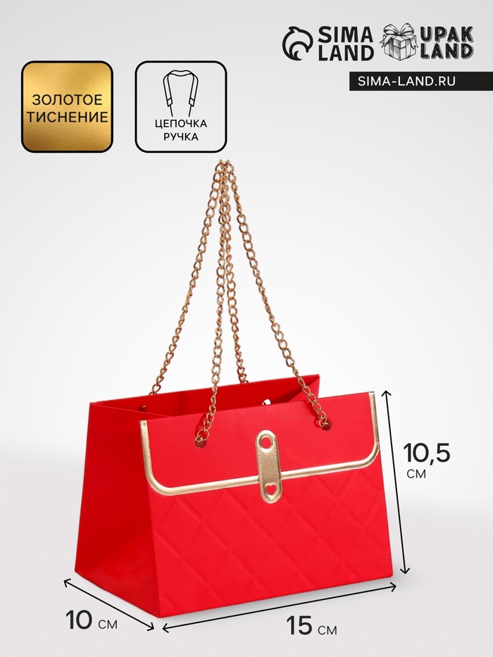 Сумка для цветов тиснение красная, «Самой прекрасной», влагостойкая, 23×15×9 см — Характеристики
