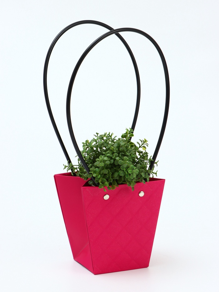 Сумка для цветов тиснение малина влагостойкая, 12×12 - 8×8 - 12.5 см