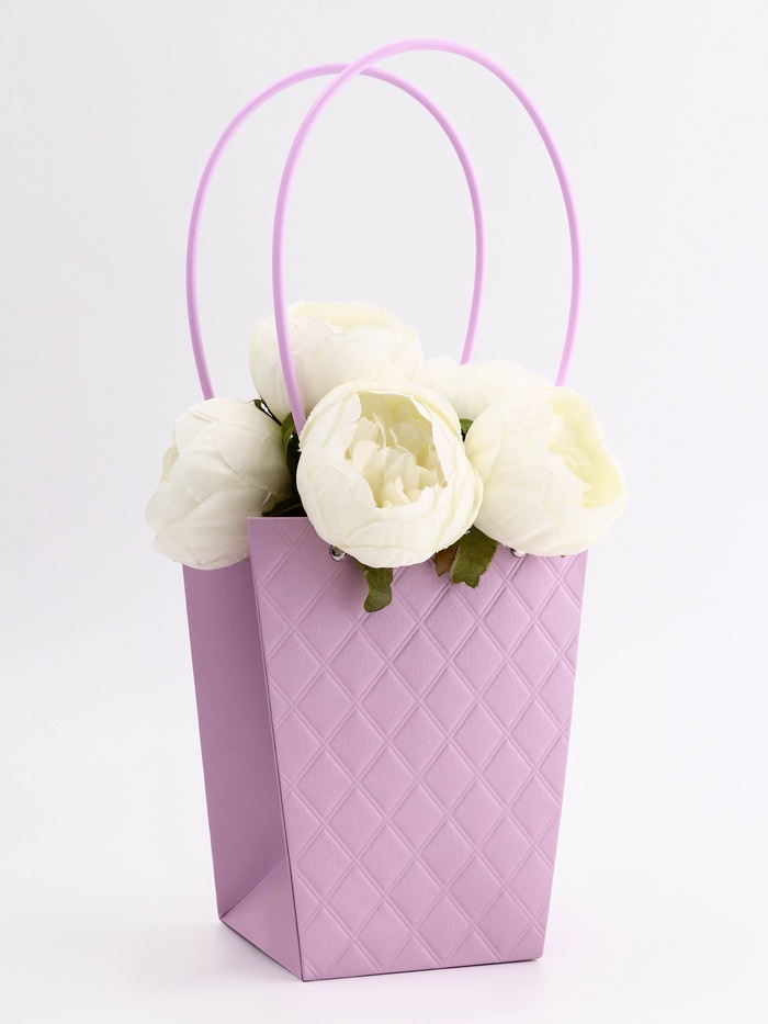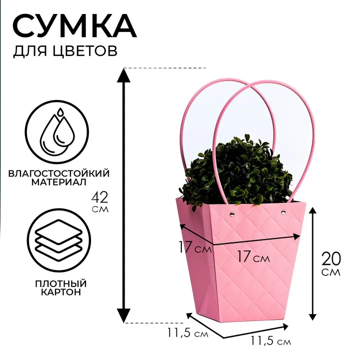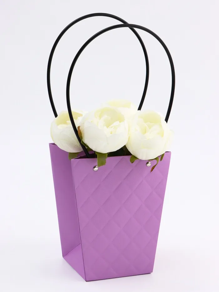 Элегантная водостойкая сумка для цветов — идеальное решение для стильной и удобной упаковки букетов и композиций. Изготовлена из плотного влагостойкого картона, надежно защищает цветы от влаги и деформации. Удобные длинные ручки позволяют легко переносить композицию.