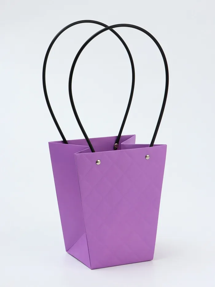 Элегантная водостойкая сумка для цветов — идеальное решение для стильной и удобной упаковки букетов и композиций. Изготовлена из плотного влагостойкого картона, надежно защищает цветы от влаги и деформации. Удобные длинные ручки позволяют легко переносить композицию.