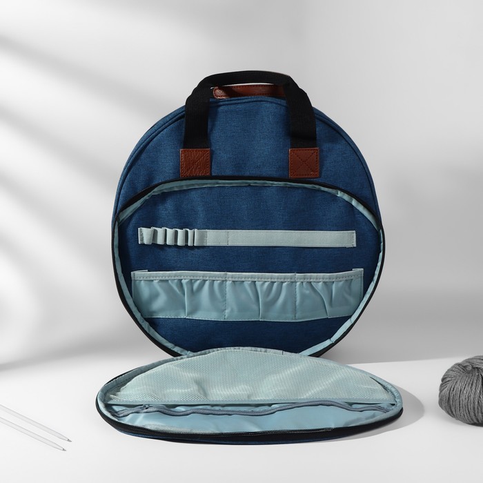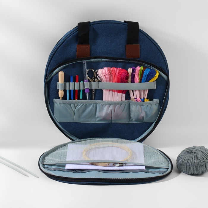 Сумка для вышивания, 2 отделения на молнии, с ручками, d=35×12 см, синяя — Характеристики