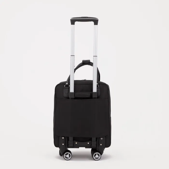 Дорожная сумка на колесах в классическом черном цвете - идеальный выбор для тех, кто ценит удобство и стиль. Компактные размеры (длина 35 см, высота 40 см, ширина 15 см) обеспечивают легкость транспортировки, а основное отделение на молнии и четыре наружных кармана позволяют рационально разместить вещи. Универсальная модель подходит для мужчин и женщин, изготовлена из прочного полиэстера. С 4 пластиковыми колесами, сумка гарантирует плавное перемещение.