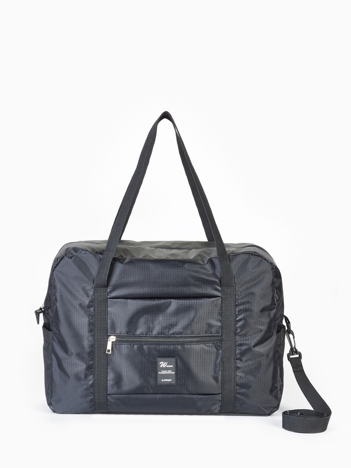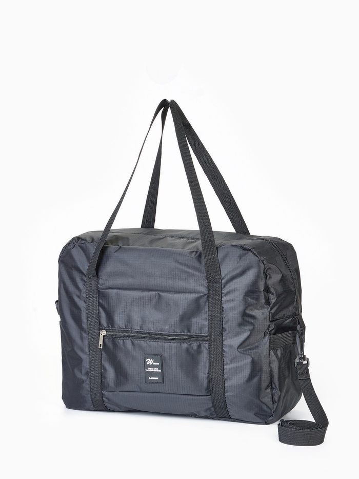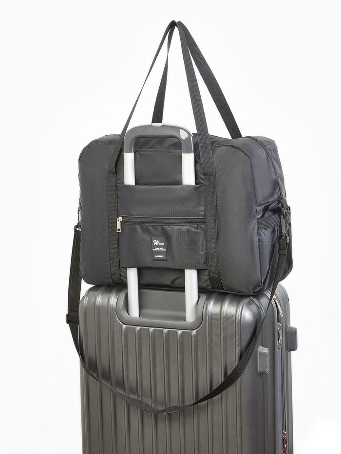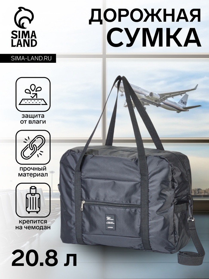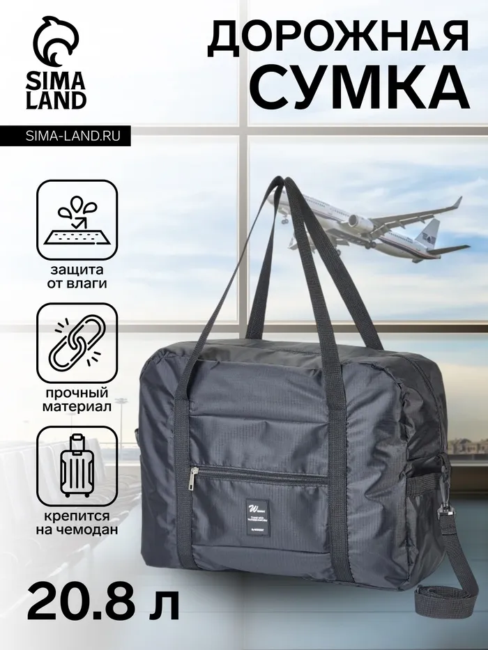Сумка дорожная, 3 наружных кармана, на молнии, держатель для чемодана, длинный ремень, чёрная — Характеристики