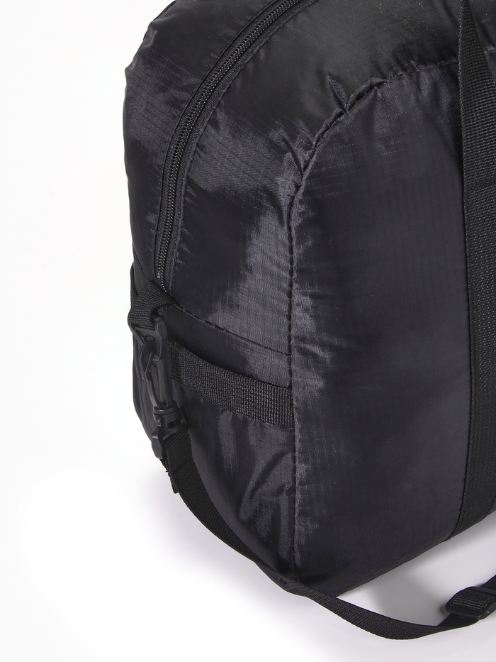 Сумка дорожная на молнии, чёрная с уникальным дизайном, элегантно дополненным элементами надписей и цифр. Оптимальные размеры: ширина 17 см, высота 32 см, длина 42 см, делают её идеальным спутником для путешествий и деловых поездок. Универсальная модель из полиэстера, предназначенная для всех, кто ценит комфорт и стиль. Обладатель одного просторного отделения, без отделения для обуви и колесиков, она сохраняет лёгкость и простоту использования.