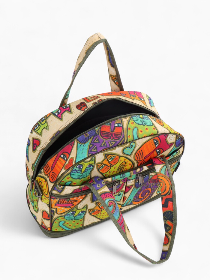 Эта дорожная сумка с ярким абстрактным принтом создана для тех, кто ценит в вещах индивидуальность и практичность. Она превращает сборы в путешествие из рутины в приятные хлопоты, с лёгкостью вместит всё необходимое для поездки.