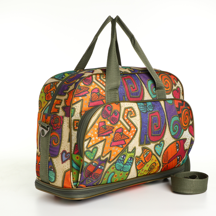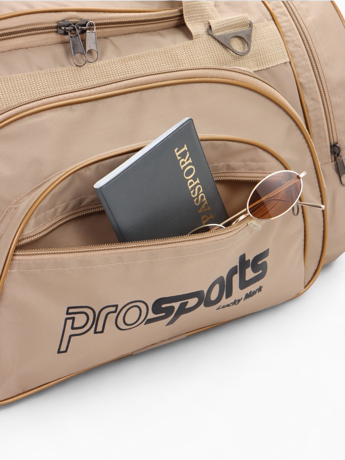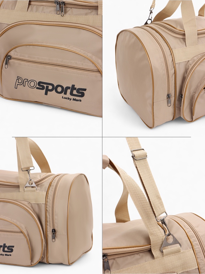 Сумка дорожная Lucky Mark на молнии, 4 наружных кармана, длинный ремень, бежевый — Характеристики