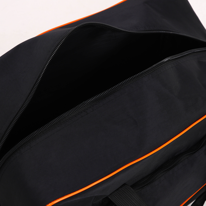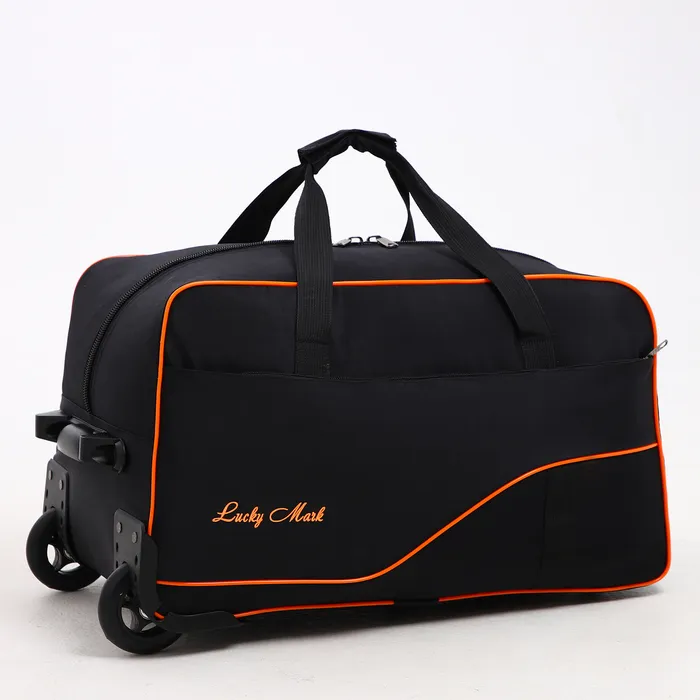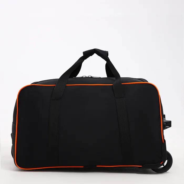 Сумка дорожная на колёсах, длинный ремень, цвет чёрный/оранжевый — Характеристики