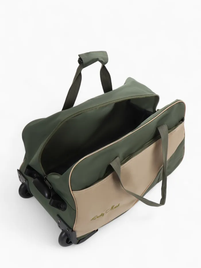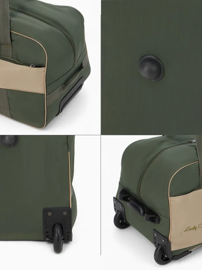 Сумка дорожная на колёсах Lucky Mark, с наружным карманом, оливковый/бежевый — Характеристики