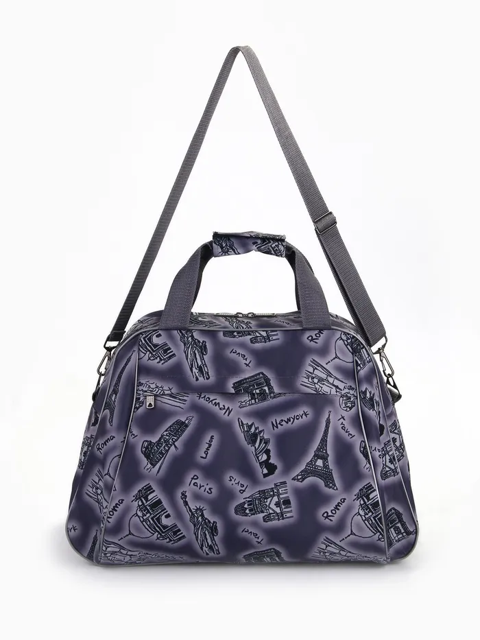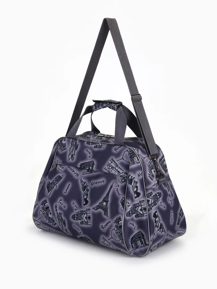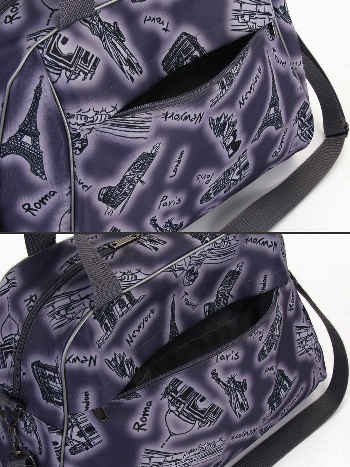 Сумка дорожная на молнии, 2 наружных кармана, длинный ремень, фиолетовая — Характеристики
