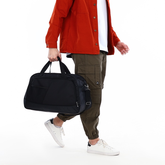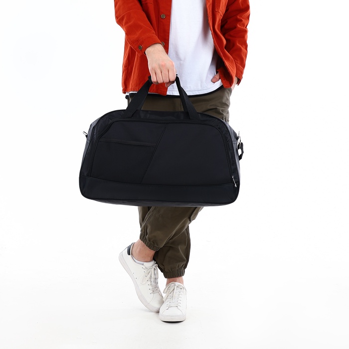 Сумка дорожная на молнии, 2 наружных кармана, длинный ремень, цвет чёрный — Характеристики