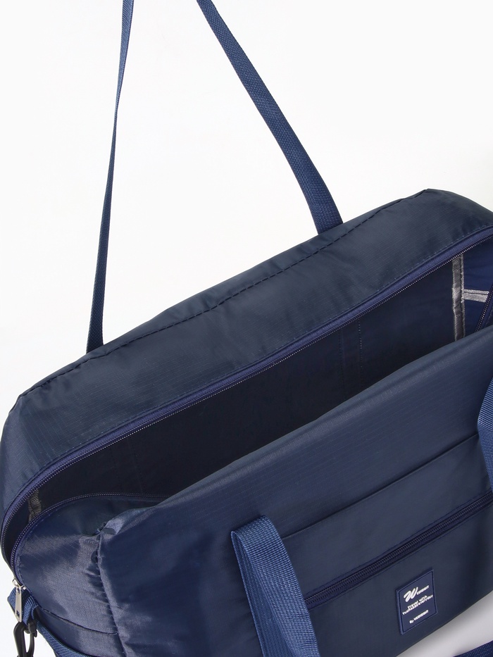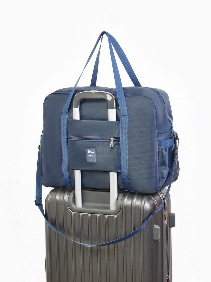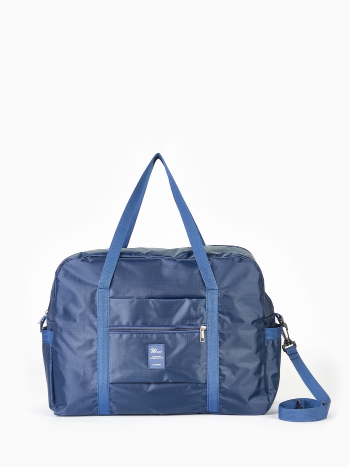 Сумка дорожная на молнии, 3 наружных кармана, держатель для чемодана, длинный ремень, синяя — Характеристики