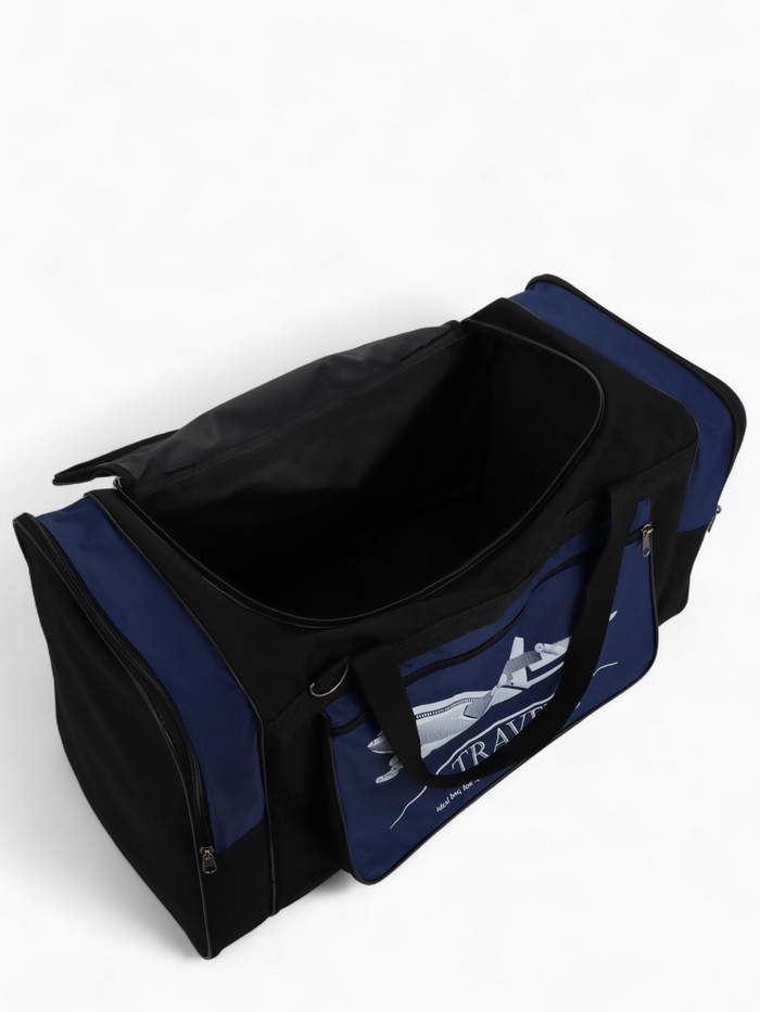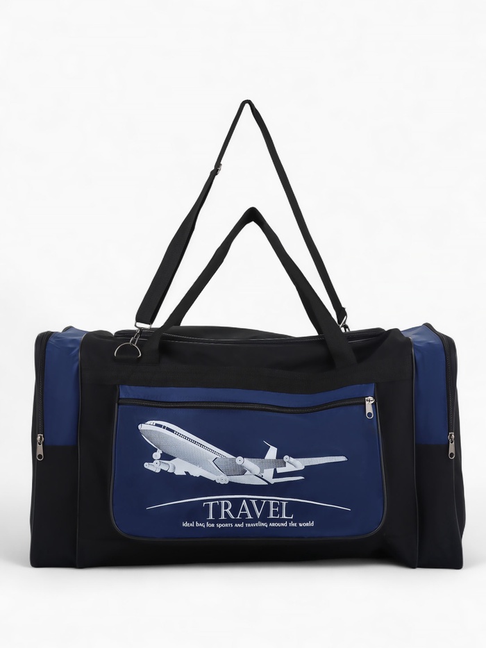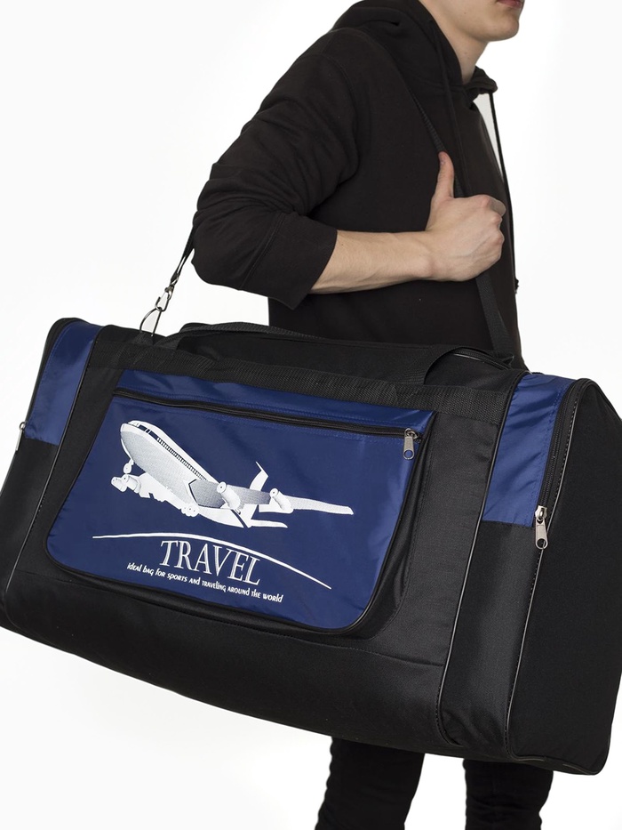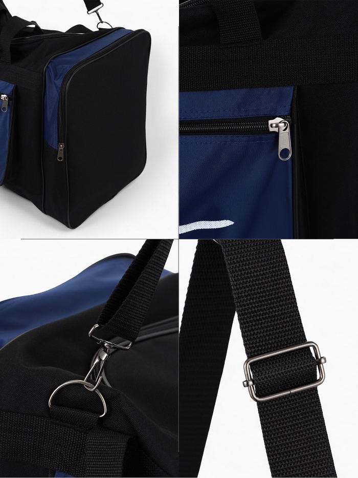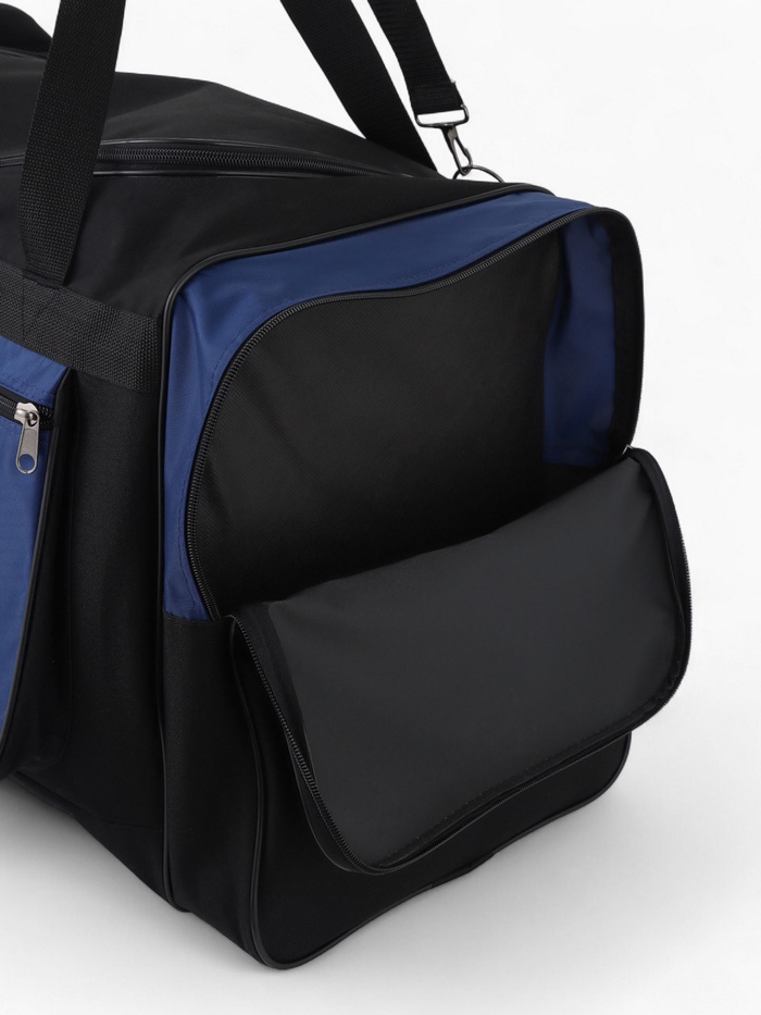 Сумка дорожная на молнии, 3 наружных кармана, длинный ремень, чёрная, синяя — Характеристики
