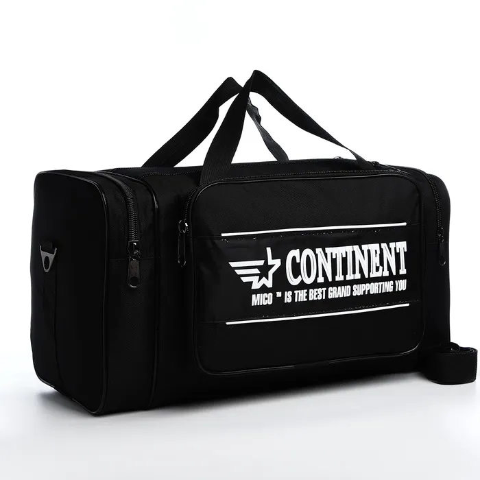 Сумка дорожная на молнии, 3 наружных кармана, длинный ремень, цвет чёрный — Характеристики