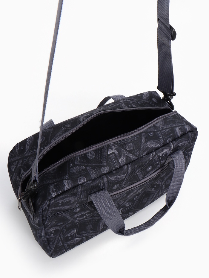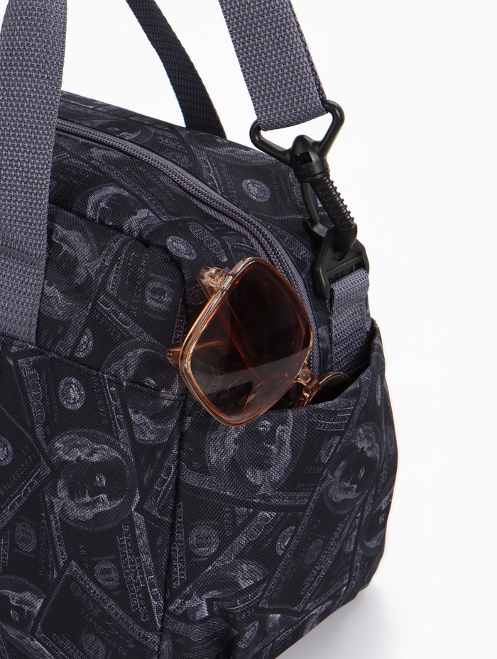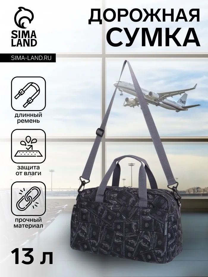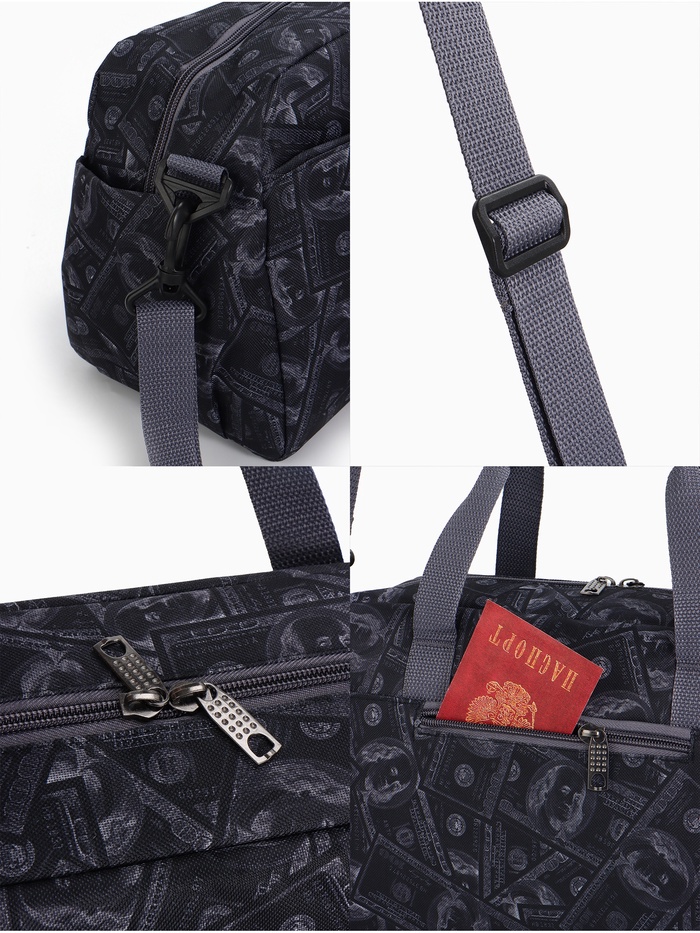 Сумка дорожная на молнии, 4 наружных кармана, длинный ремень, серая — Характеристики