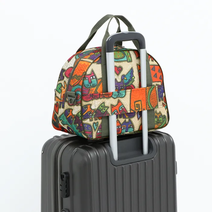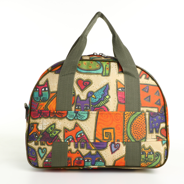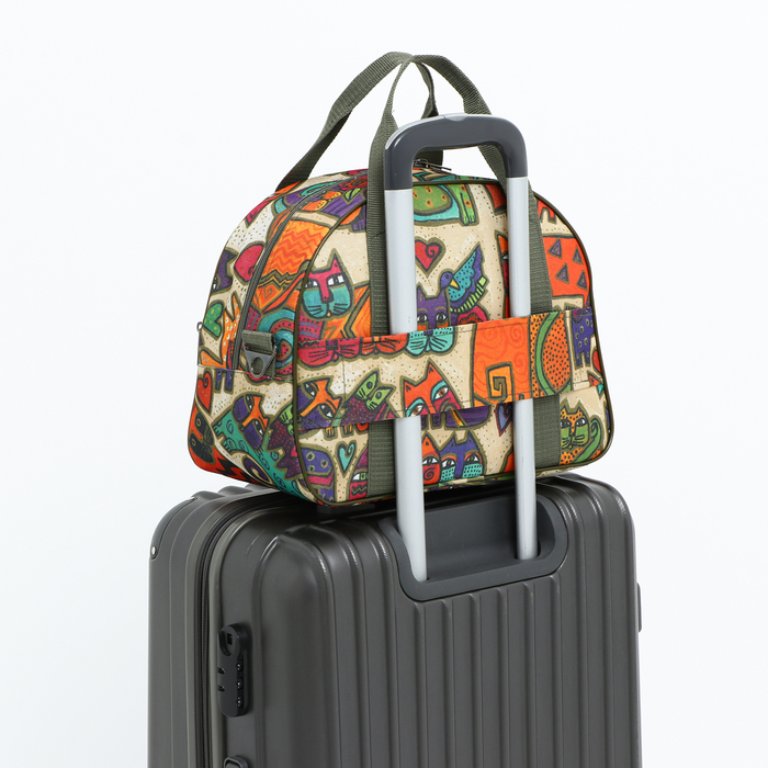 Сумка дорожная на молнии, наружный карман, держатель для чемодана, длинный ремень, цвет бежевый/разноцветный — Характеристики