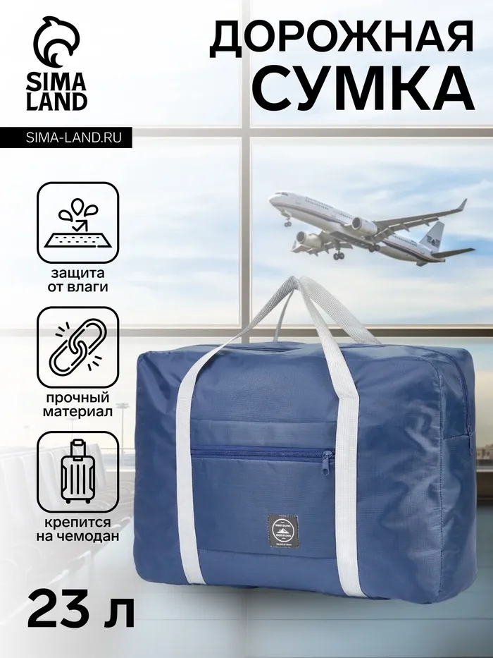 Сумка дорожная на молнии, наружный карман, держатель для чемодана, синяя — Характеристики