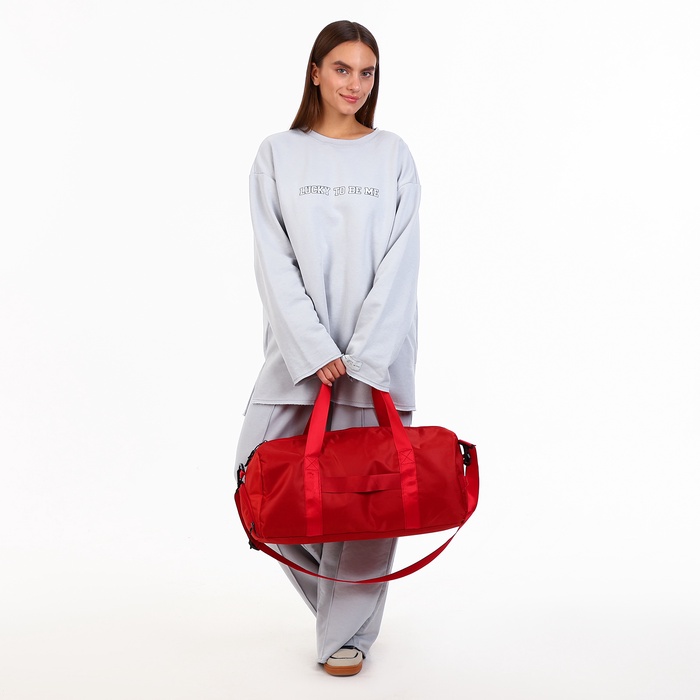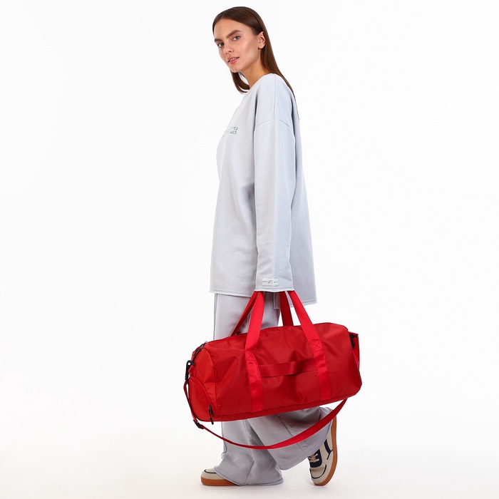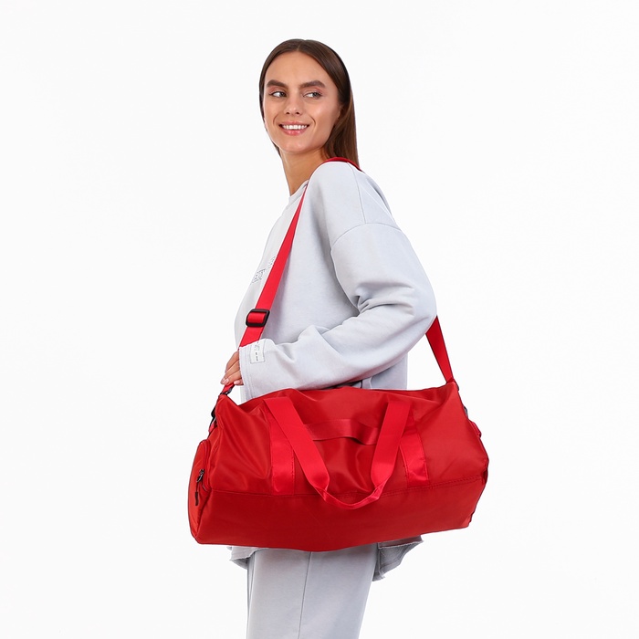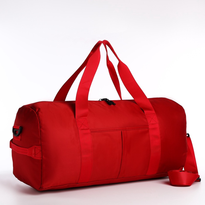 Сумка дорожная унисекс на молнии, выполненная из прочного полиэстера. Яркий красный цвет добавит стиля вашему путешествию. С размерами 50x24x22 см она достаточно вместительна для всего необходимого. Прочная и удобная без лишних деталей, с отделением для обуви. Удобная однотонная модель с длинным ремнем позволяет легко носить сумку через плечо. Универсальное решение для поездок без лишних забот.