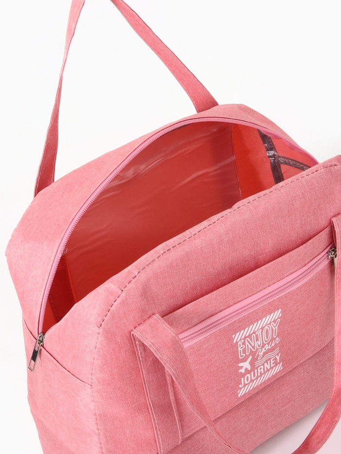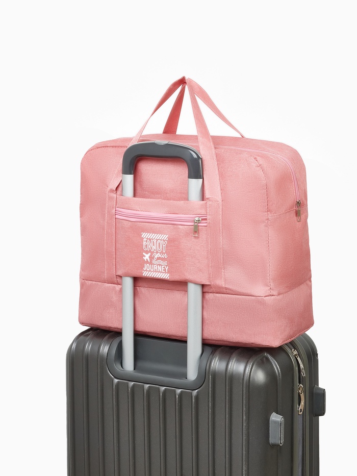 Сумка дорожная на молнии, отдел для обуви, наружный карман, держатель для чемодана, розовая — Характеристики