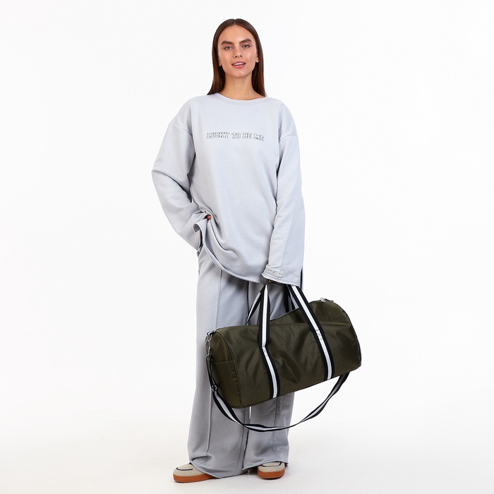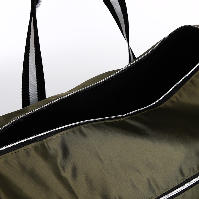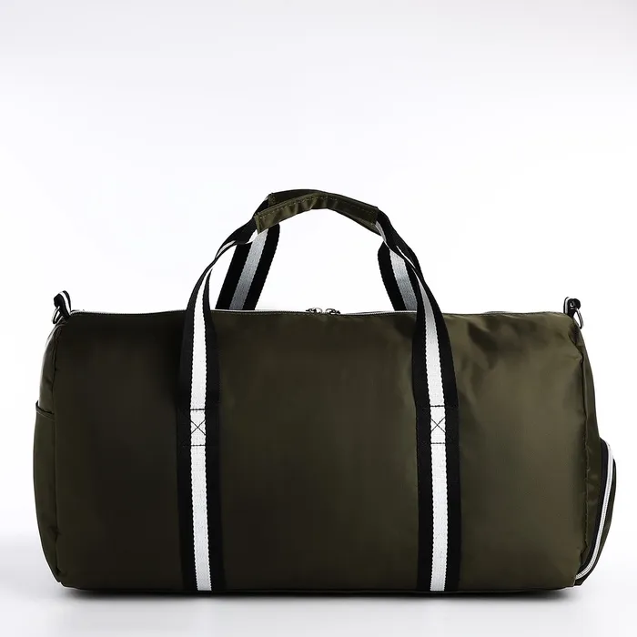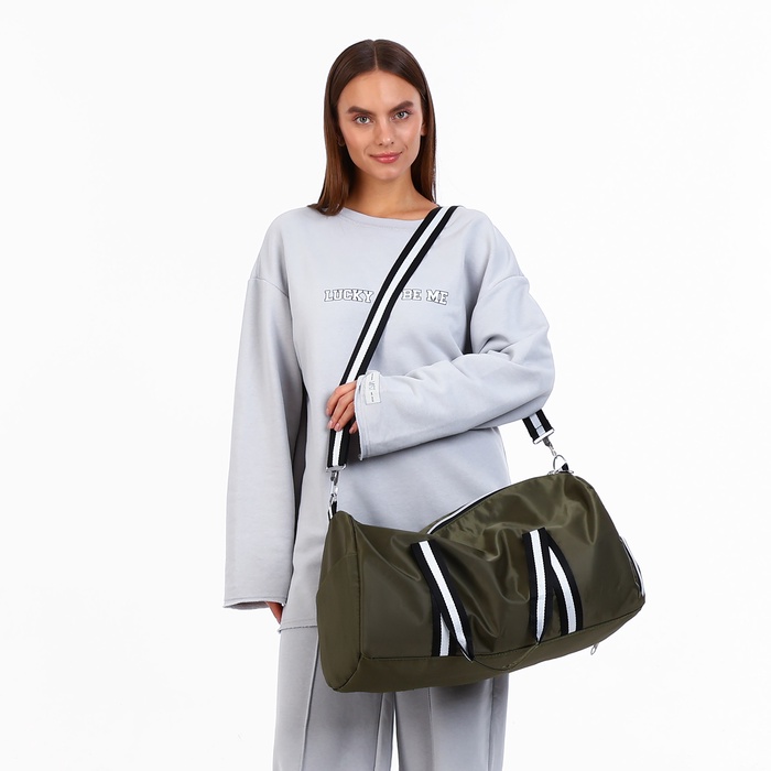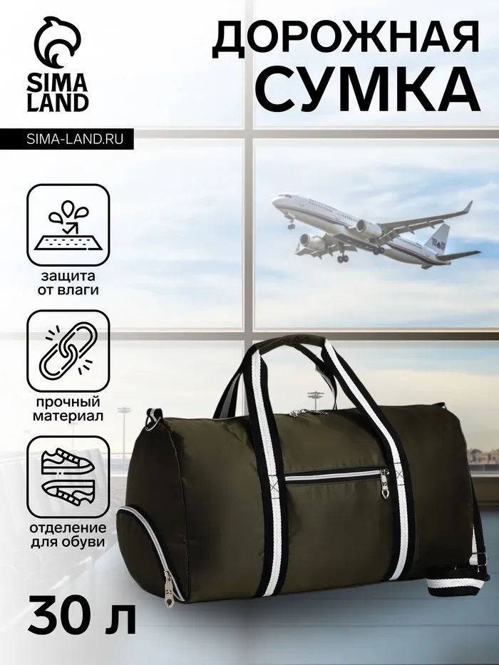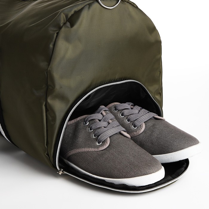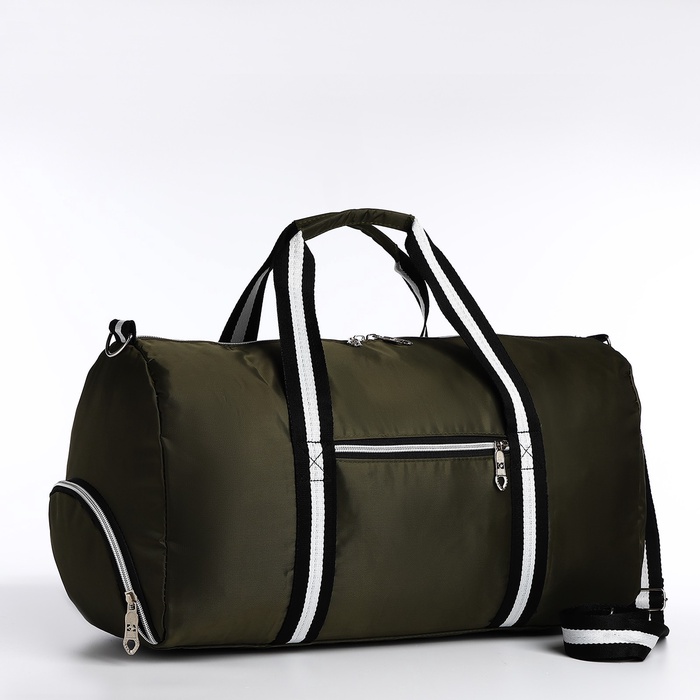 Сумка дорожная на молнии, отдел для обуви, наружный карман, длинный ремень, хаки — Характеристики