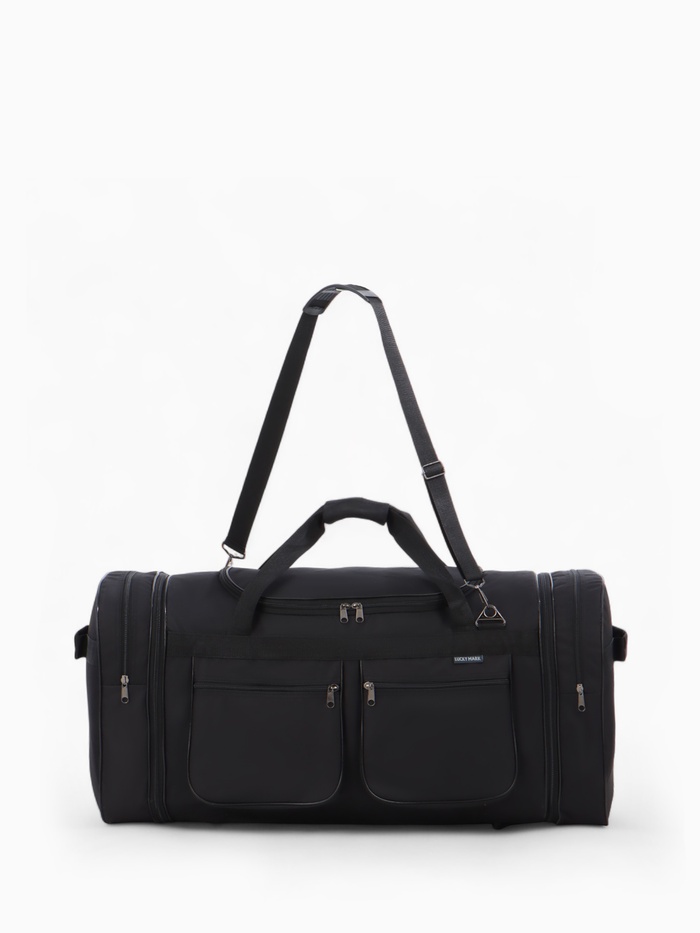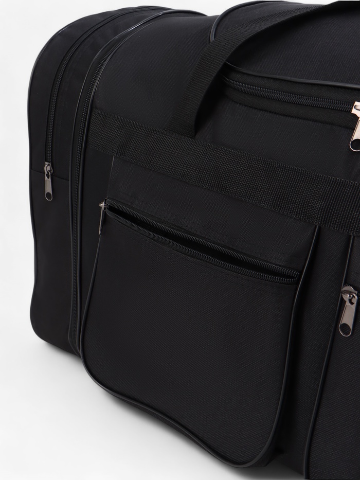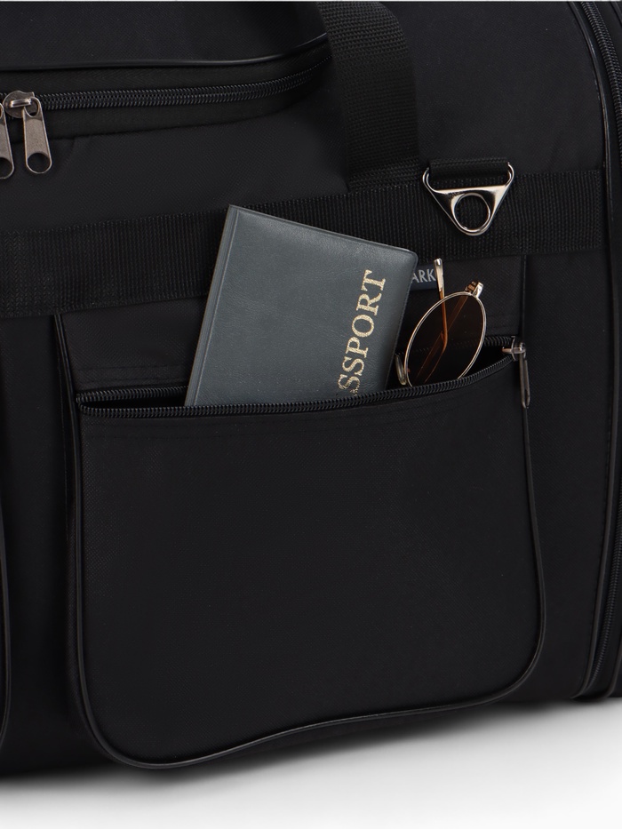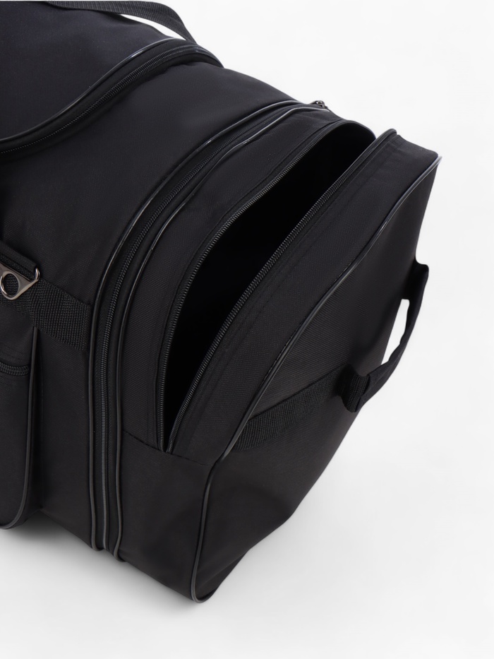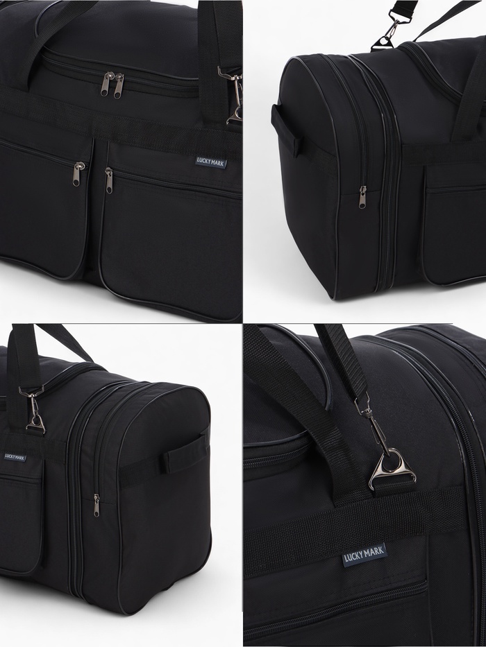 Сумка дорожная на молнии, с увеличением, 4 наружных кармана, длинный ремень, чёрная — Характеристики