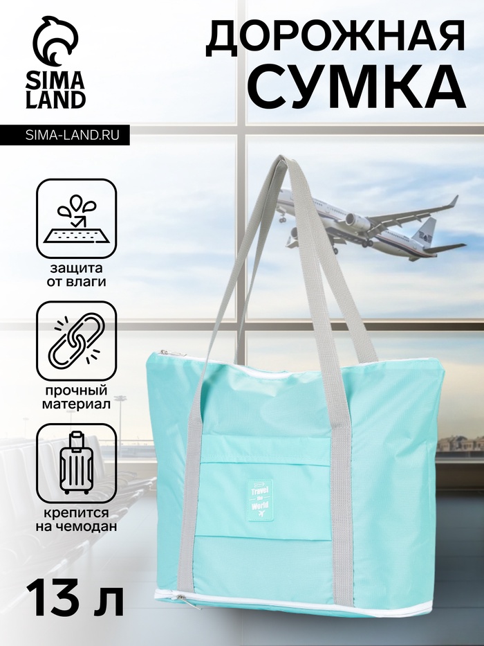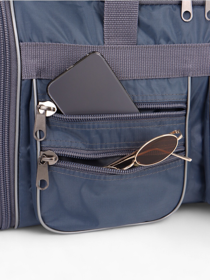 Сумка дорожная на молнии, с увеличением, 5 наружных карманов, цвет серый — Характеристики