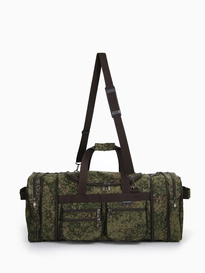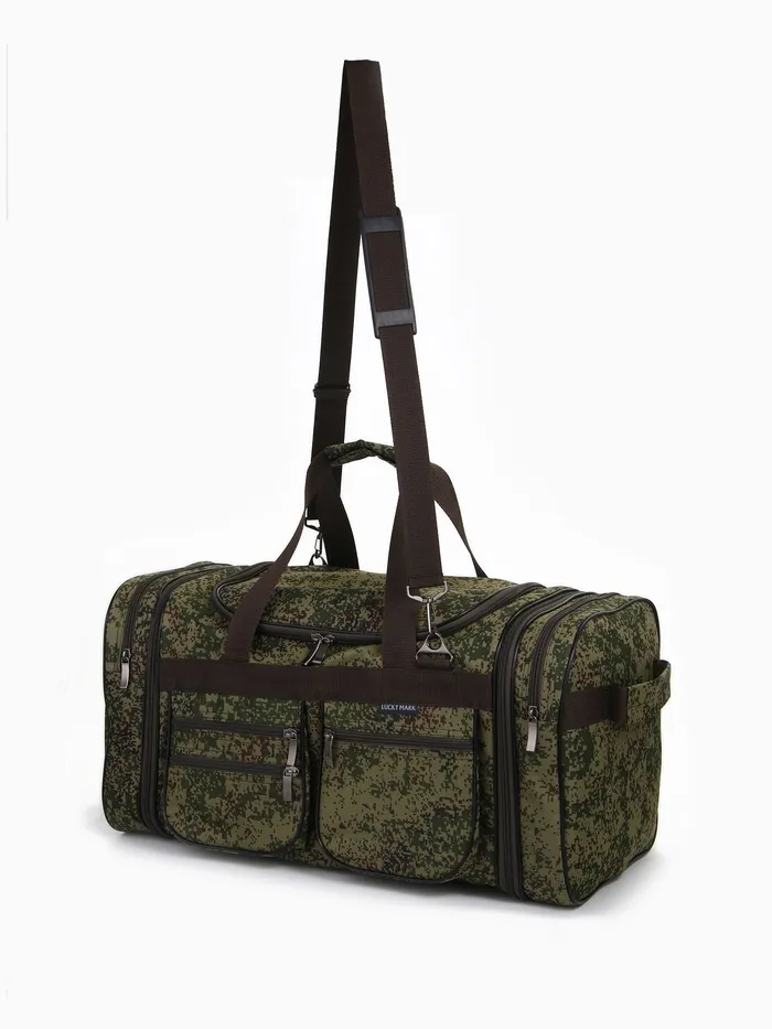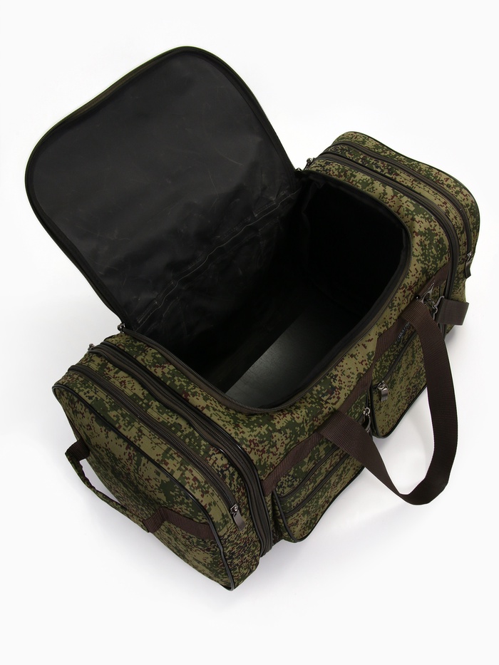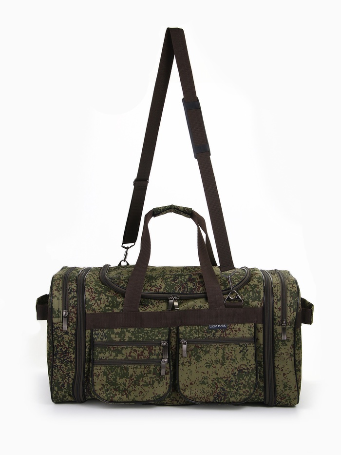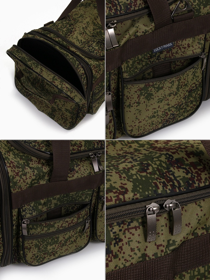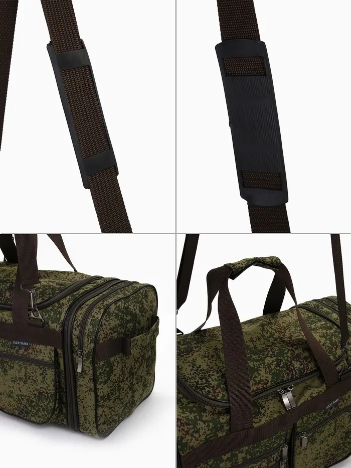 Сумка дорожная на молнии, с увеличением, наружные карманы, длинный ремень, камуфляж/зелёная — Характеристики