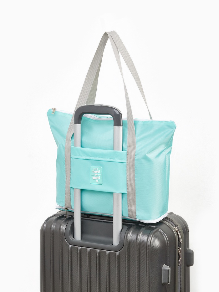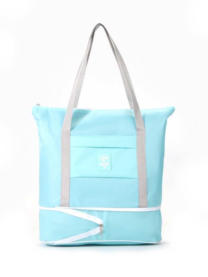 Сумка дорожная на молнии, с увеличением, наружный карман, держатель для чемодана, длинный ремень, голубая — Характеристики