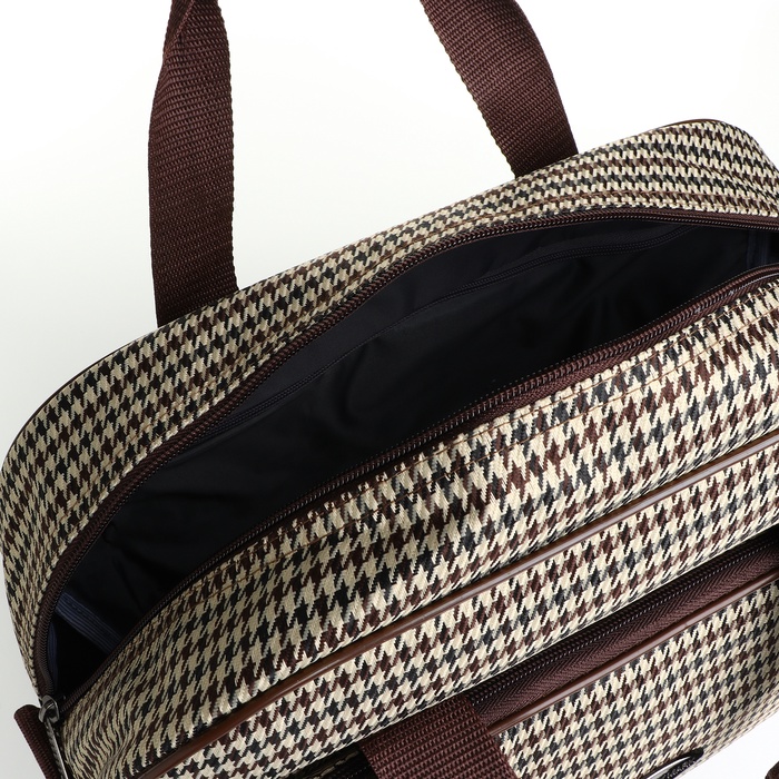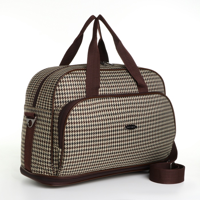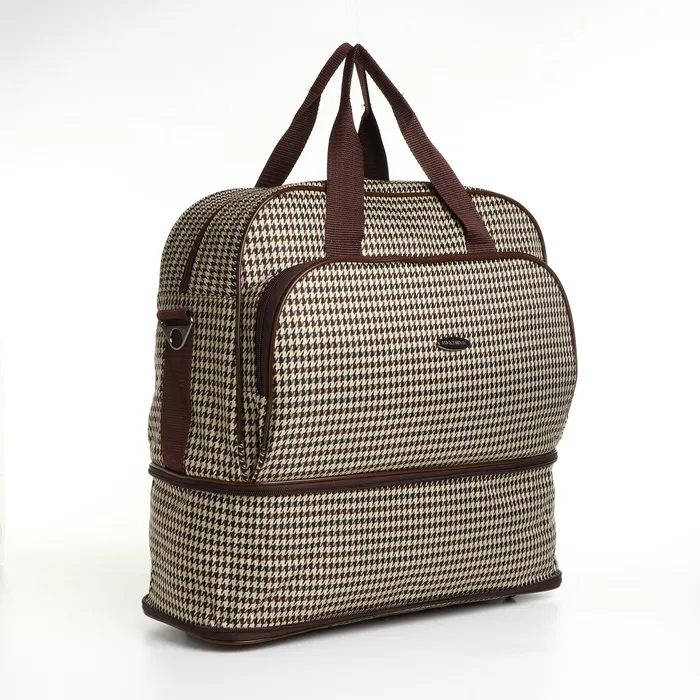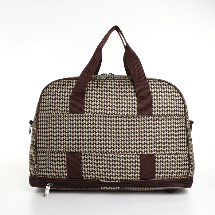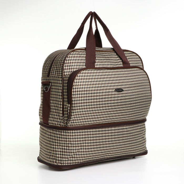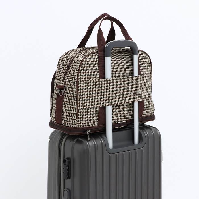 Сумка дорожная на молнии, с увеличением, наружный карман, держатель для чемодана, длинный ремень, цвет бежевый/коричневый — Характеристики