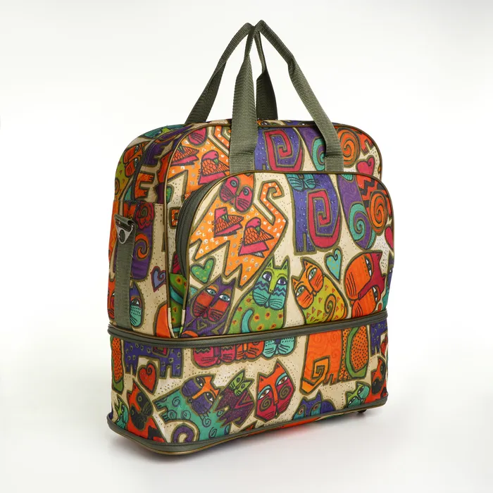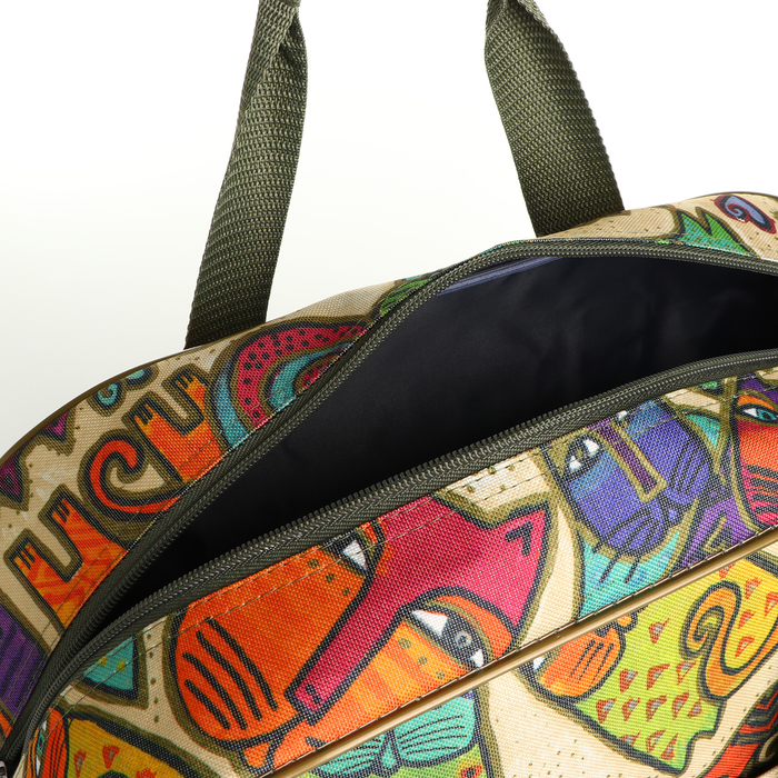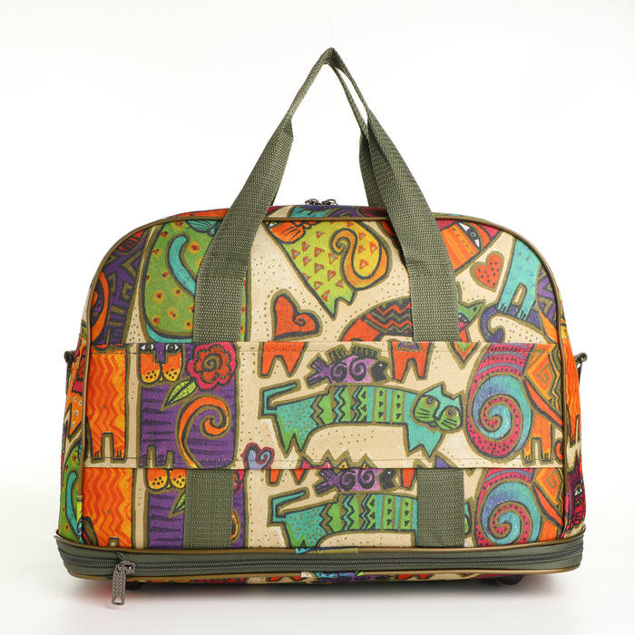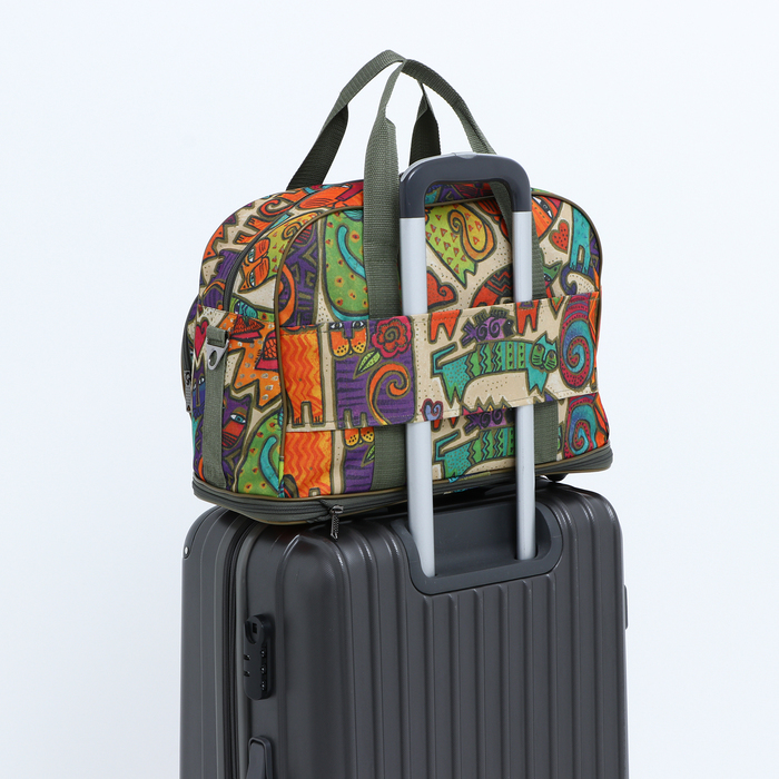 Сумка дорожная на молнии, с увеличением, наружный карман, держатель для чемодана, длинный ремень, цвет бежевый/разноцветный — Характеристики