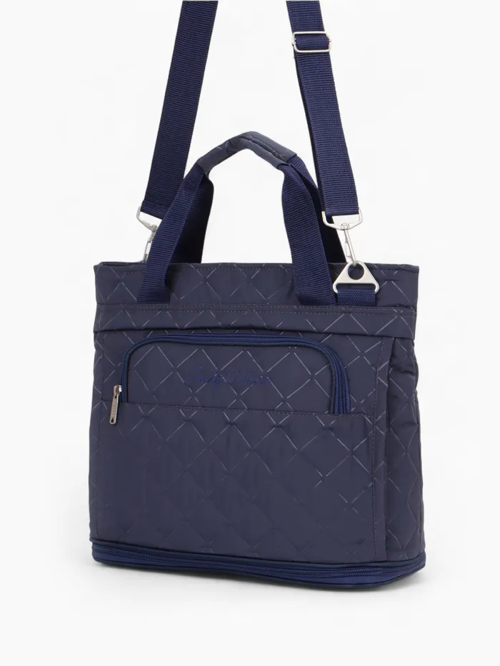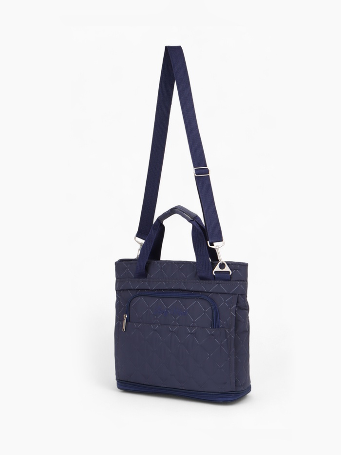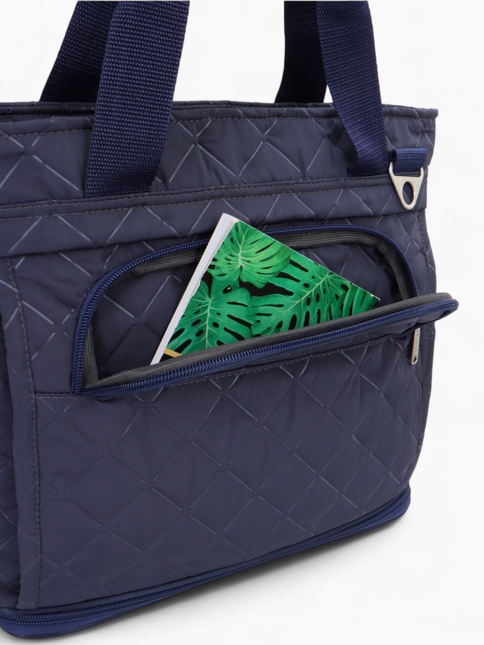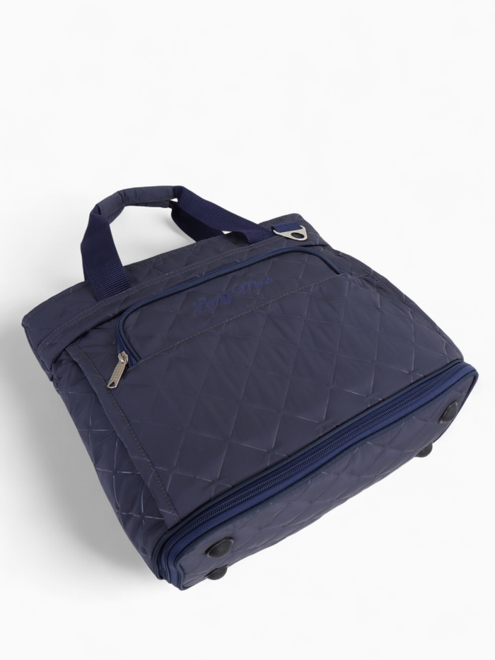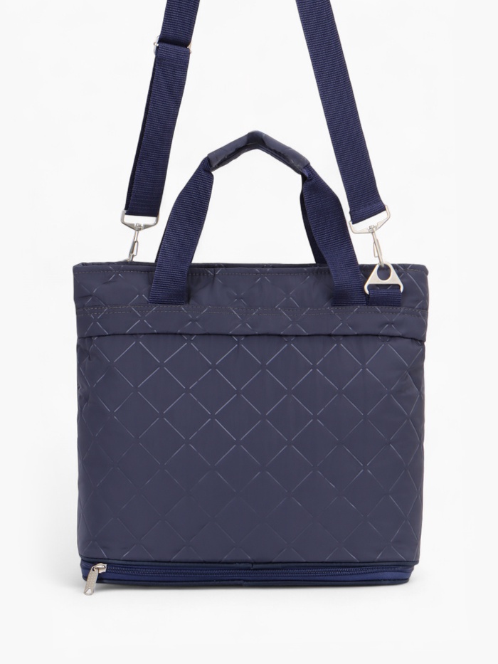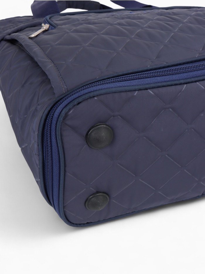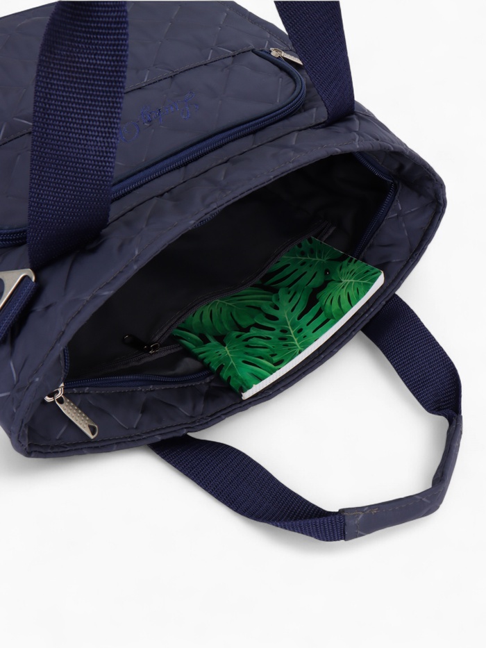 Сиреневая дорожная сумка с геометрическим дизайном — стильный аксессуар для повседневного использования. Функция увеличения объёма до 17 литров делает её практичным выбором для прогулок и коротких поездок. Длинный регулируемый ремень позволяет носить сумку через плечо или в руках.