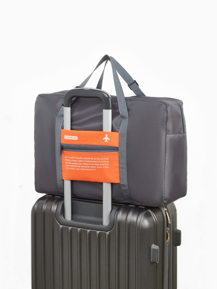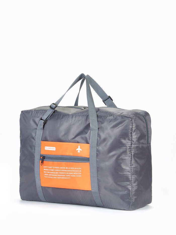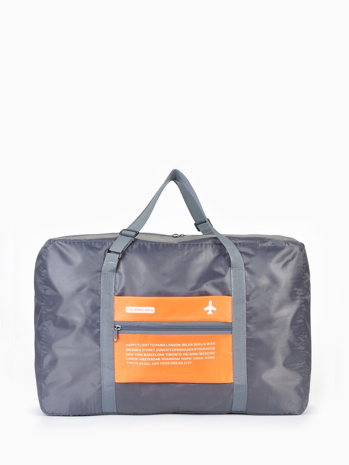 Сумка дорожная на молнии, складная в косметичку, наружный карман, держатель для чемодана, серая, оранжевая — Характеристики