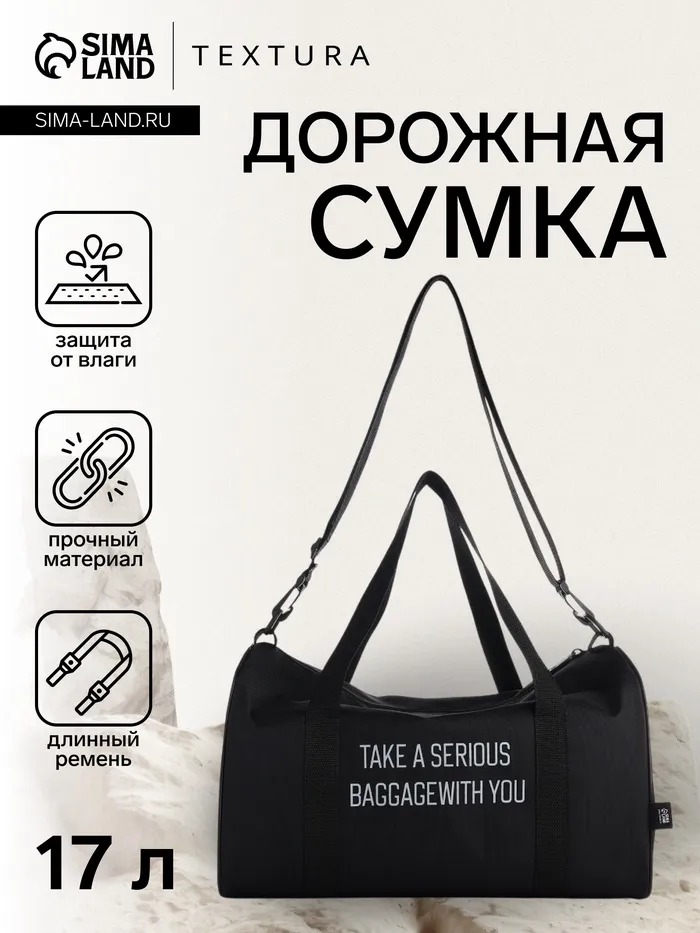 Сумка дорожная на молнии TEXTURA, маленький размер, чёрная — Характеристики