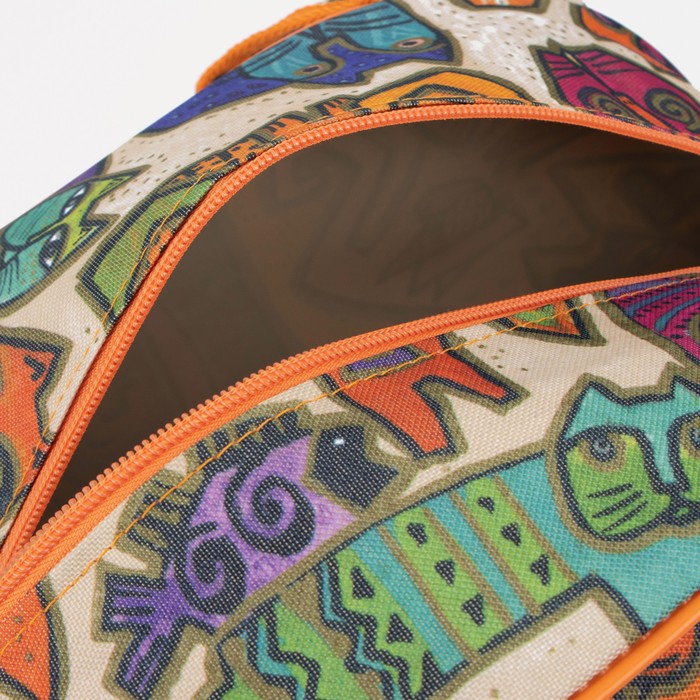 Оранжевый цвет и смелый принт добавляют образу индивидуальности даже в дороге. Сумка подходит для выходных, поездки на тренировку или как ручная кладь. Её текстильная структура мягкая, но держит форму, оставляя вещи в порядке. Это выбор для тех, кто ценит в дорожных аксессуарах лёгкость, выразительный дизайн и функциональность без лишних деталей.